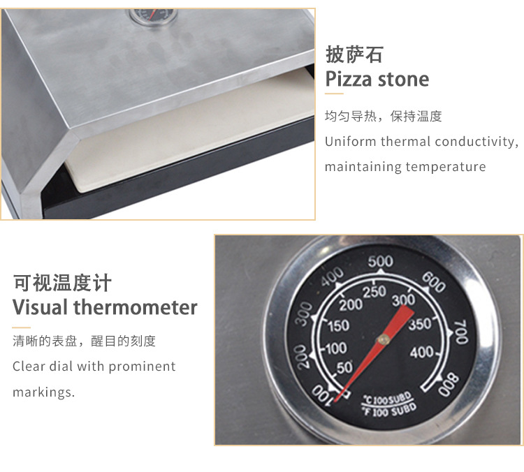 En stock Amazon americano pizza horno portátil horno de pizza con termómetro Acero inoxidable hogar pizza parrilla