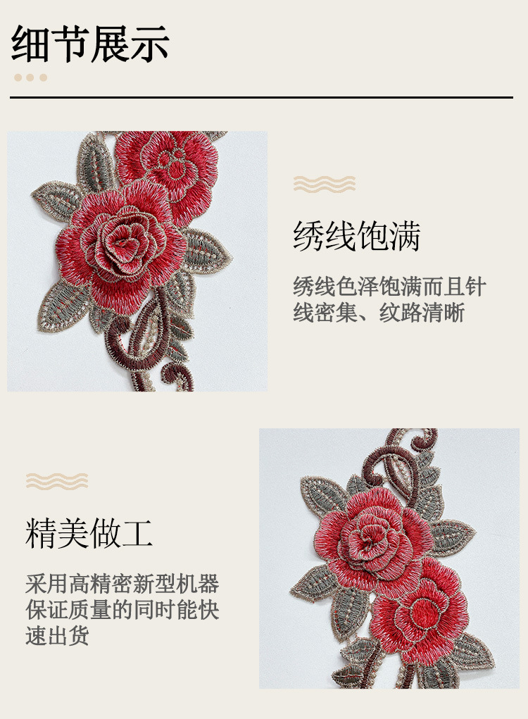 Fábrica directa de bordado de computadora estilo nacional retro estereoscópico hueco alambre de oro flores bordado parche encaje