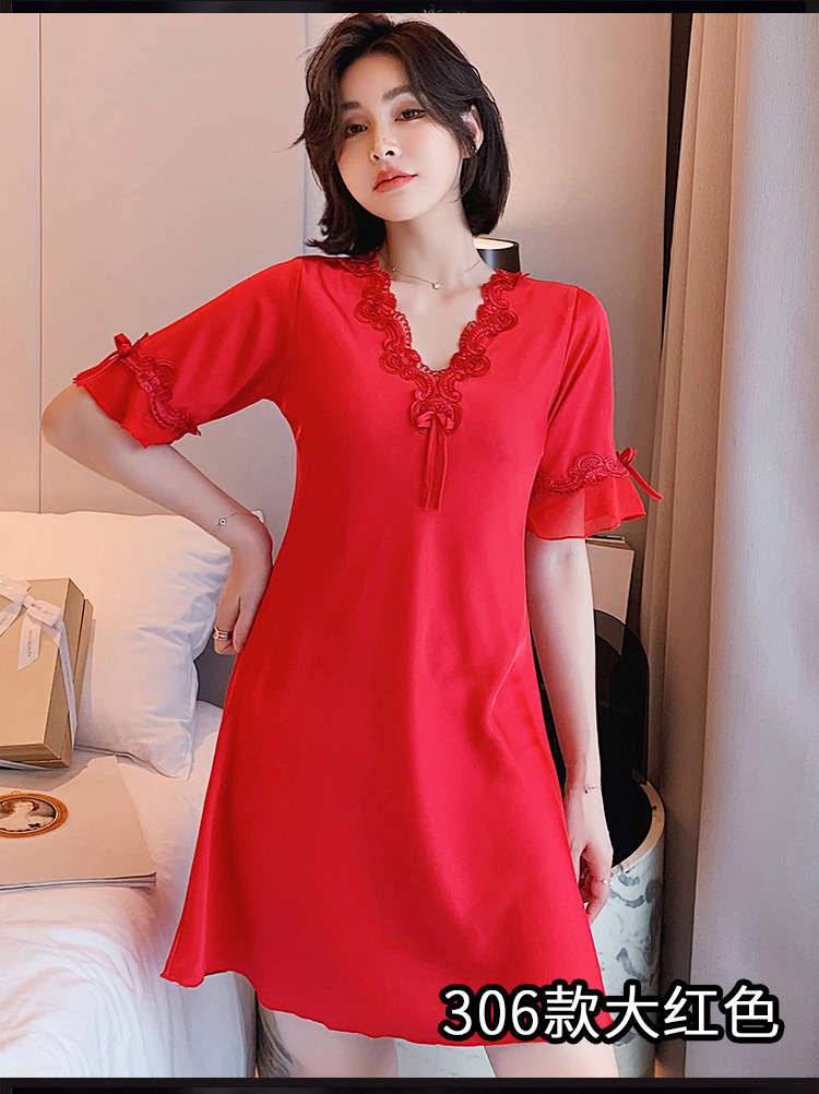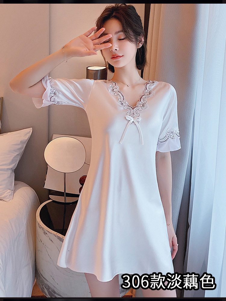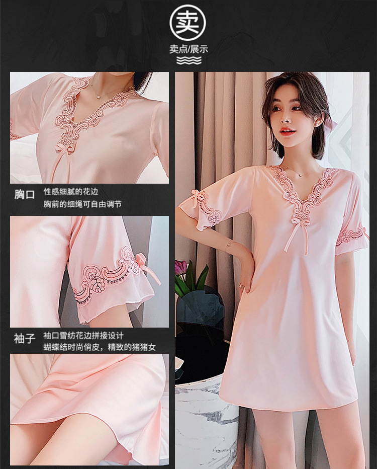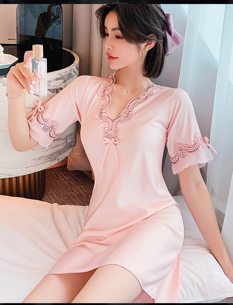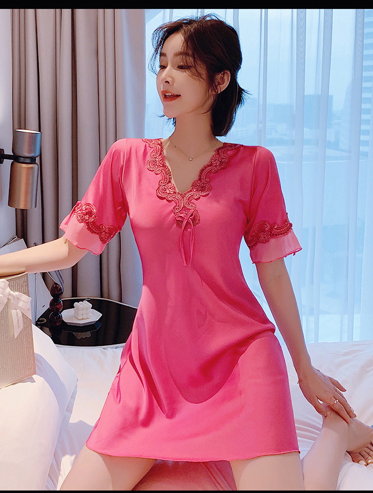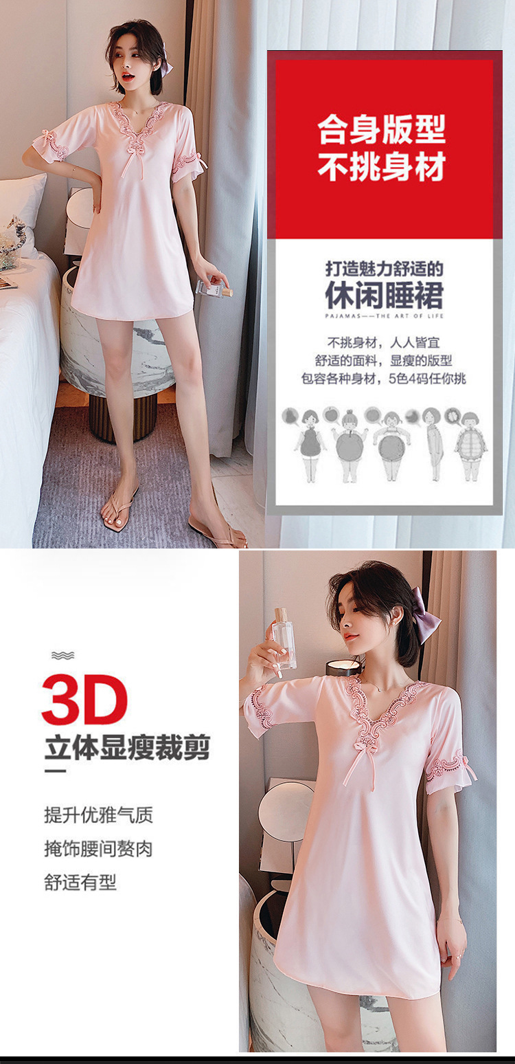Pijamas cuidadosamente seleccionados para mujer verano fino encaje de seda de hielo de manga corta encaje sexy de gran tamaño camisón de seda servicio a domicilio al por mayor