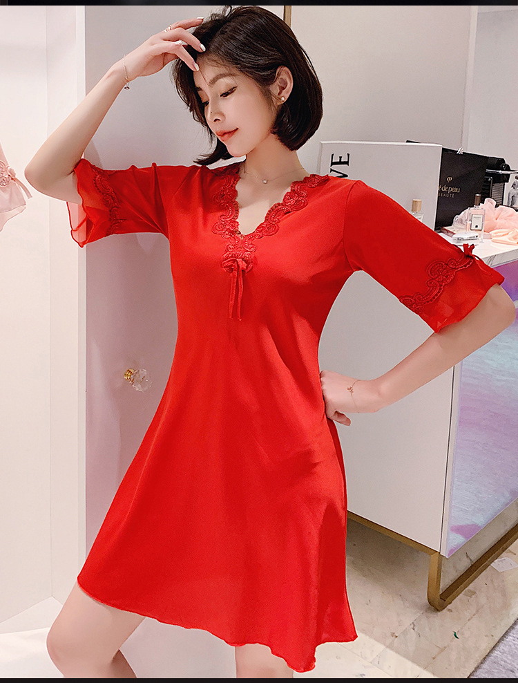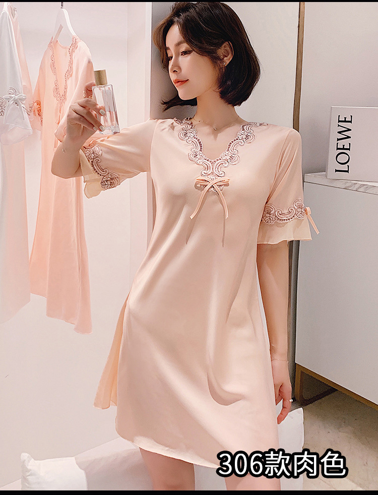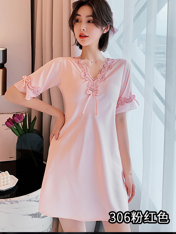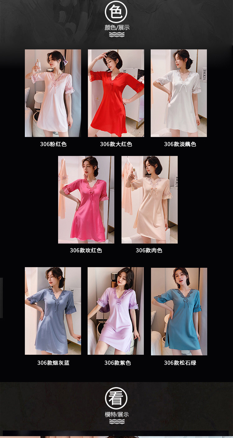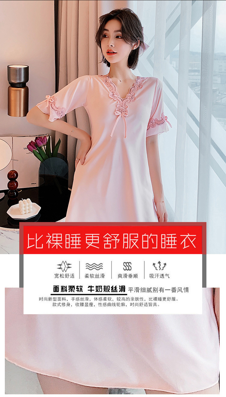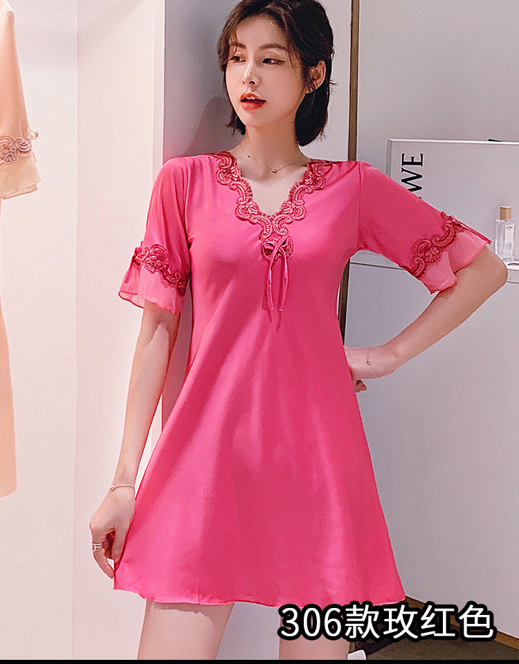 Pijamas cuidadosamente seleccionados para mujer verano fino encaje de seda de hielo de manga corta encaje sexy de gran tamaño camisón de seda servicio a domicilio al por mayor