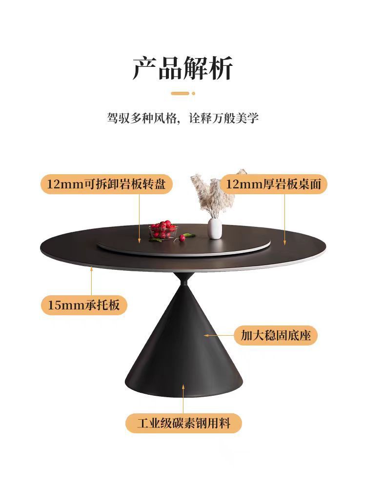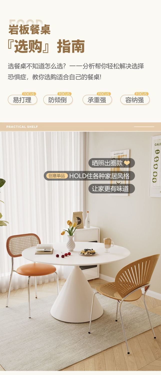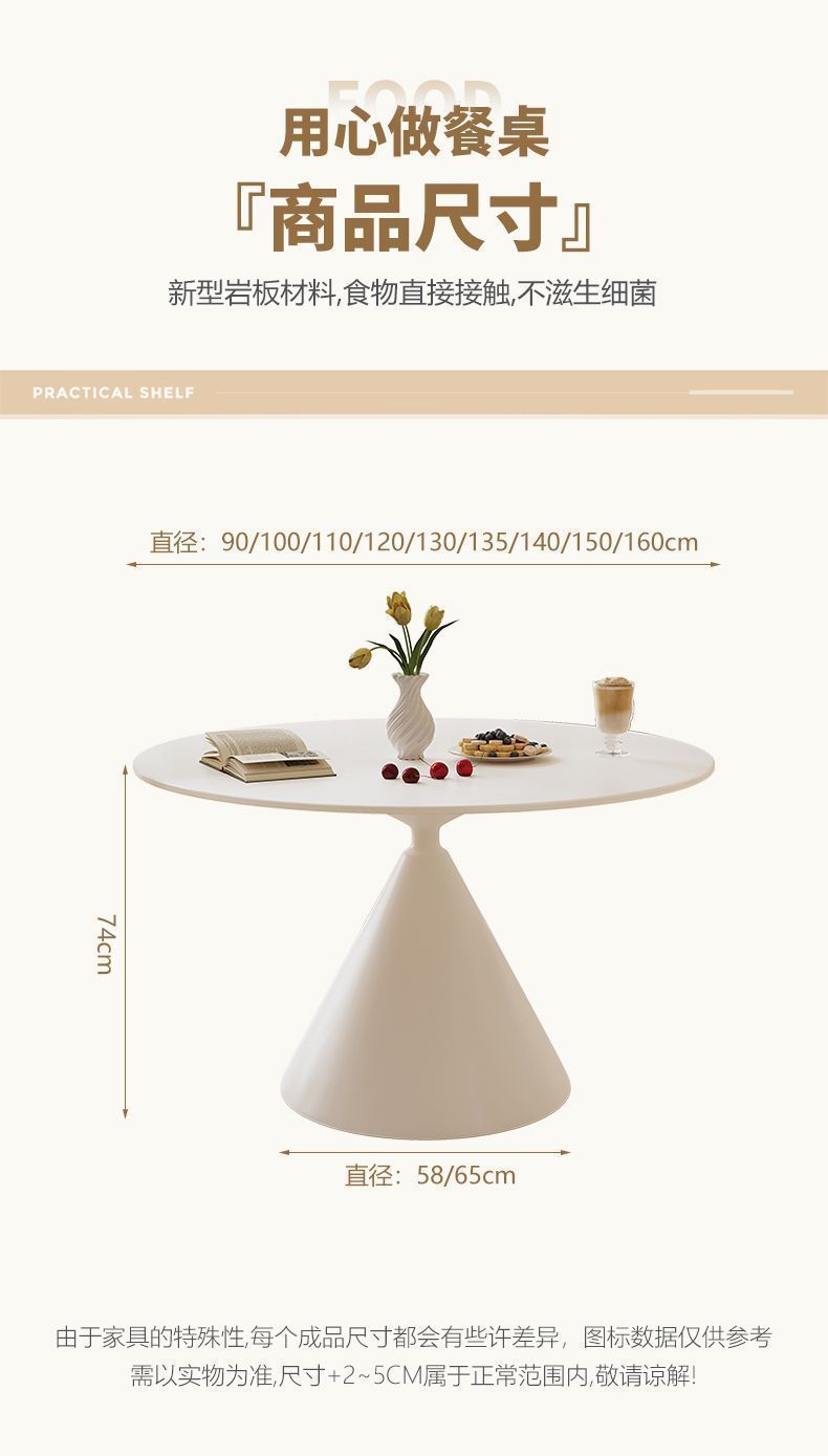 Mesa de comedor redonda de tablero de roca de estilo crema francesa, blanco puro, mesa redonda simple moderna, apartamento pequeño, combinación de mesa y silla de comedor para el hogar