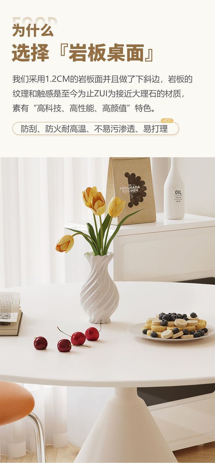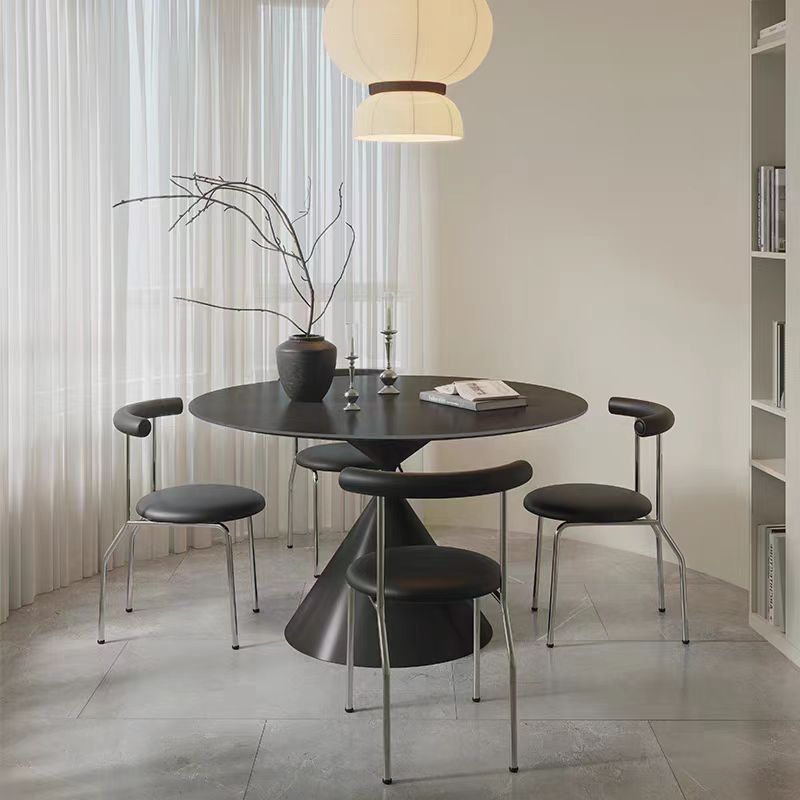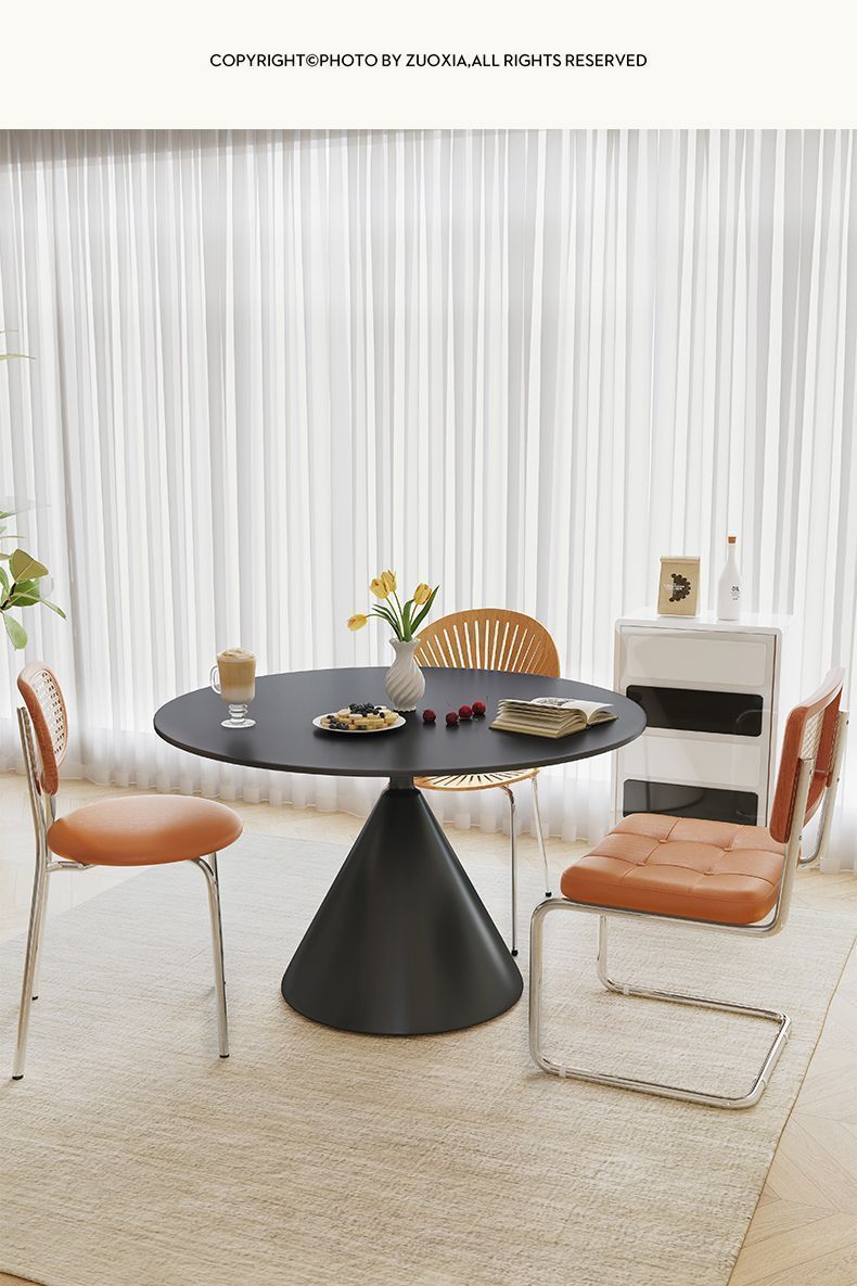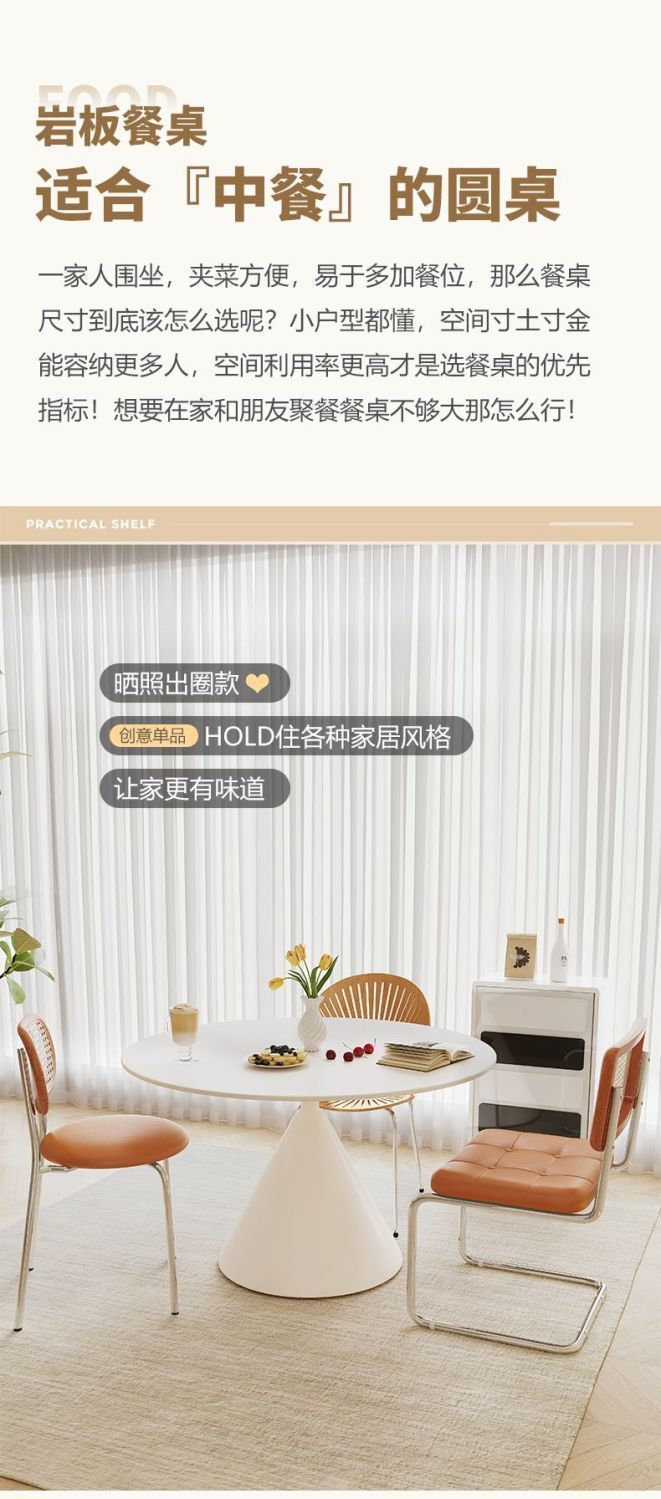 Mesa de comedor redonda de tablero de roca de estilo crema francesa, blanco puro, mesa redonda simple moderna, apartamento pequeño, combinación de mesa y silla de comedor para el hogar