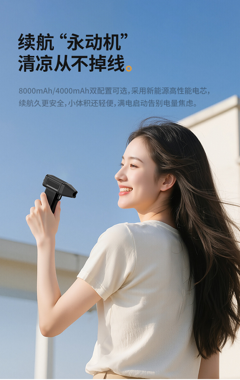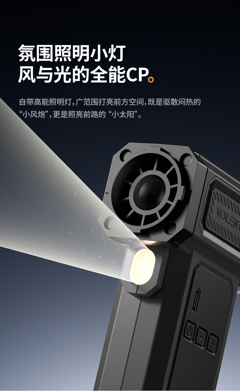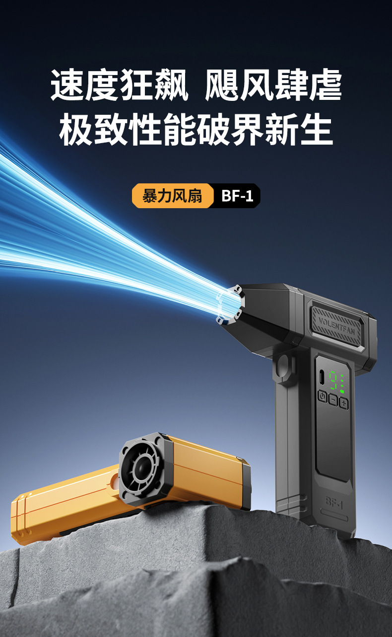 Ventilador turbo de mano, potente encendedor de fuego para exteriores, soplador de polvo para coche, viento fuerte, pantalla digital de verano, transfronterizo, pequeño sin aspas, seguro.