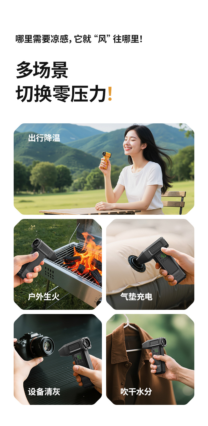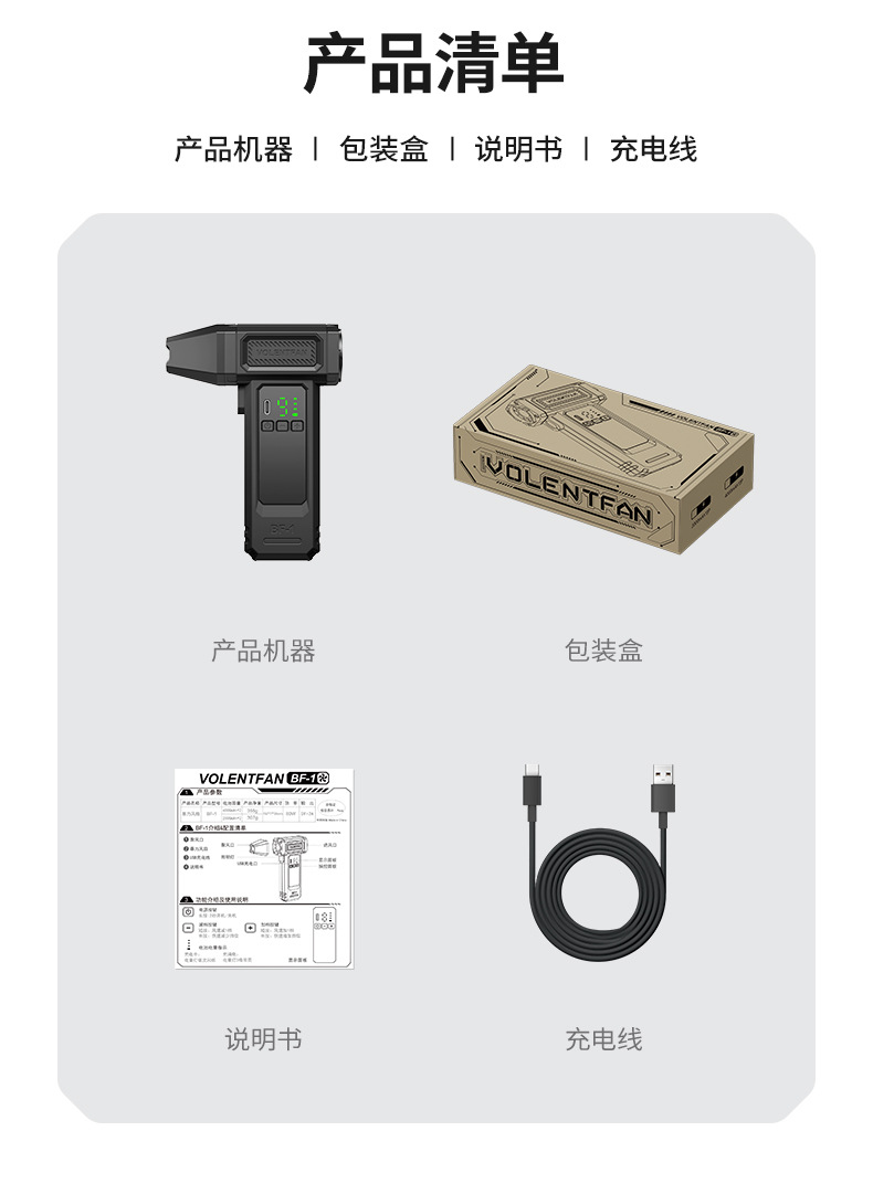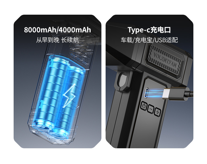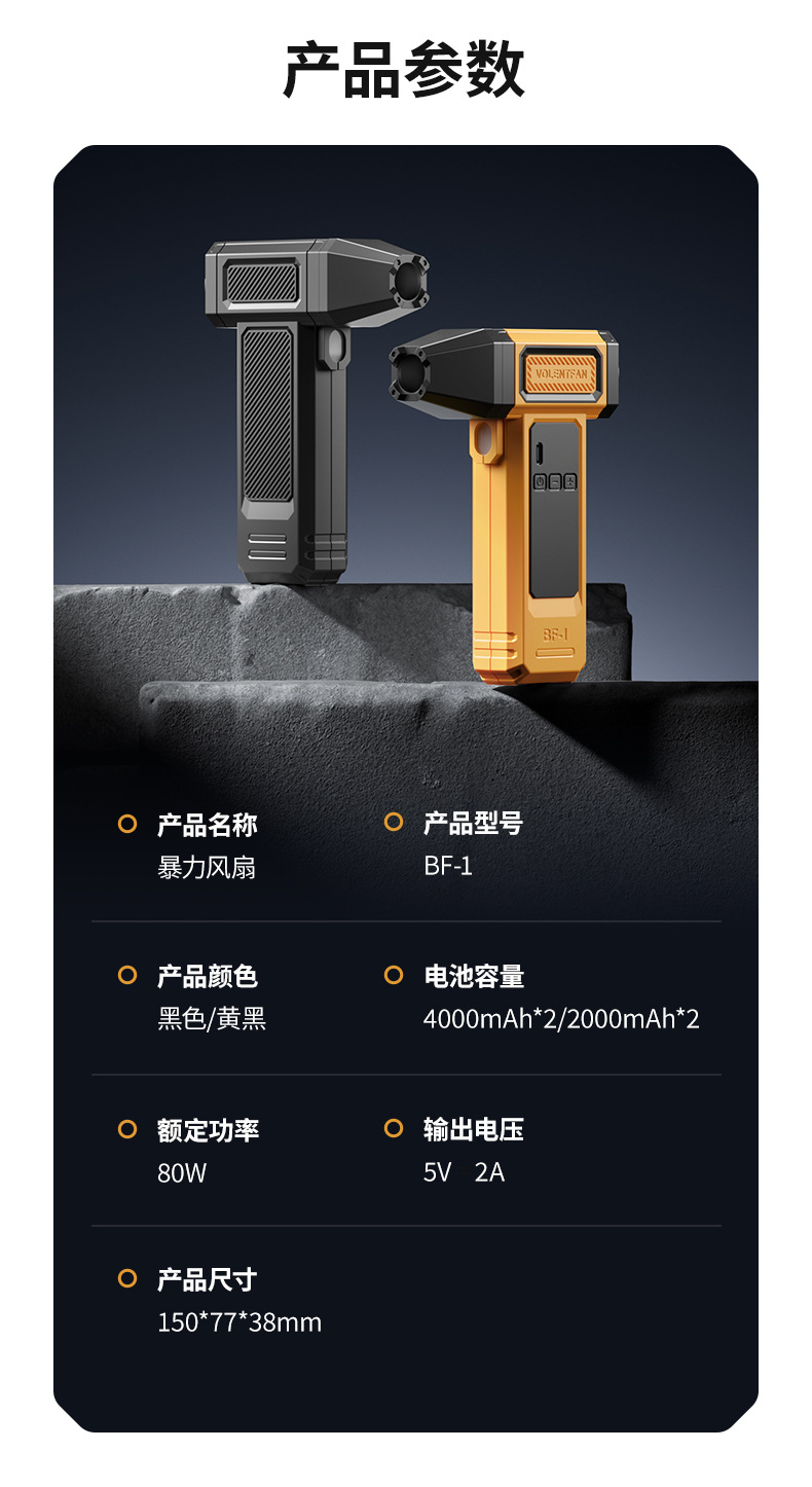 Ventilador turbo de mano, potente encendedor de fuego para exteriores, soplador de polvo para coche, viento fuerte, pantalla digital de verano, transfronterizo, pequeño sin aspas, seguro.