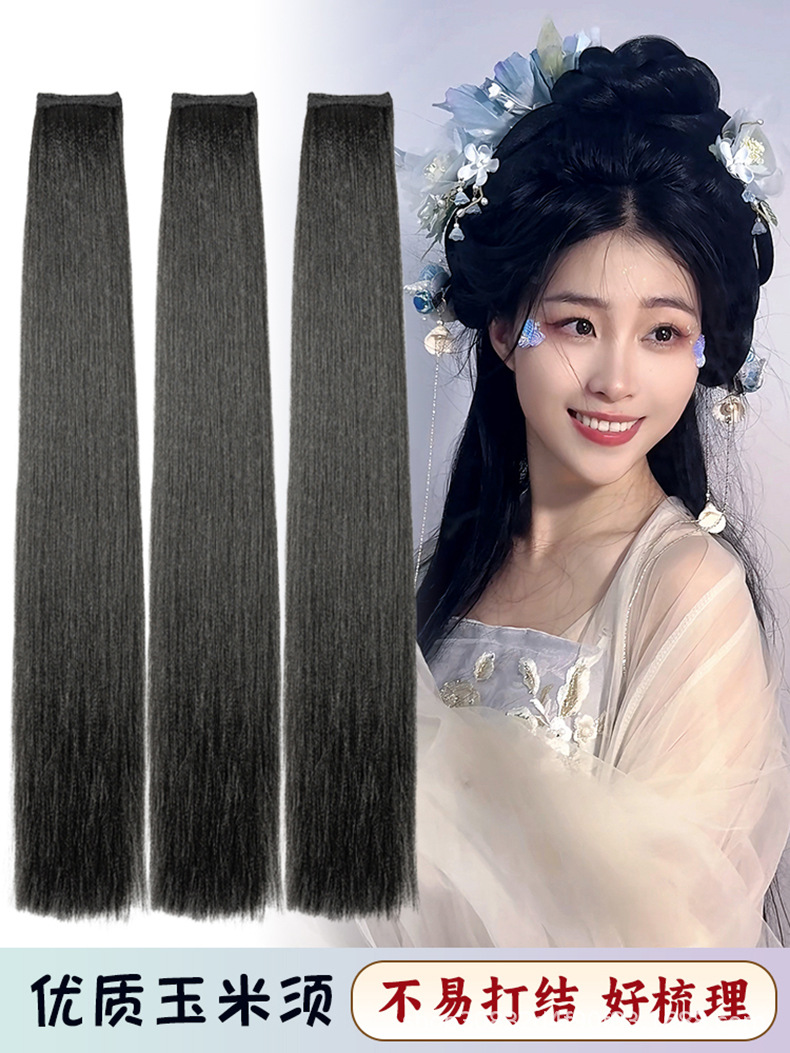 Peruca de cabello de maquillaje especial de maíz, estilo antiguo, extensión de cabello de una pieza sin nudos, cabello de cabeza posterior.