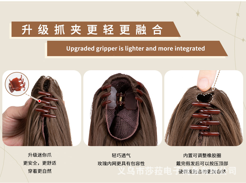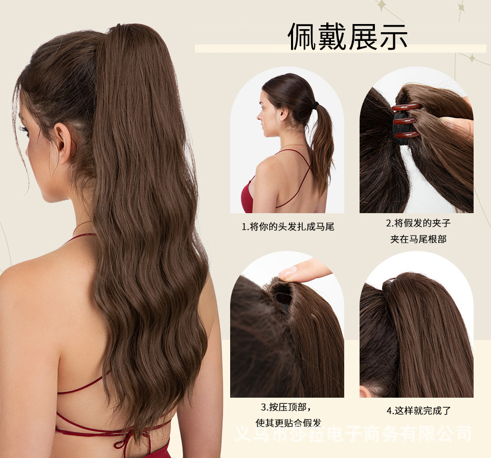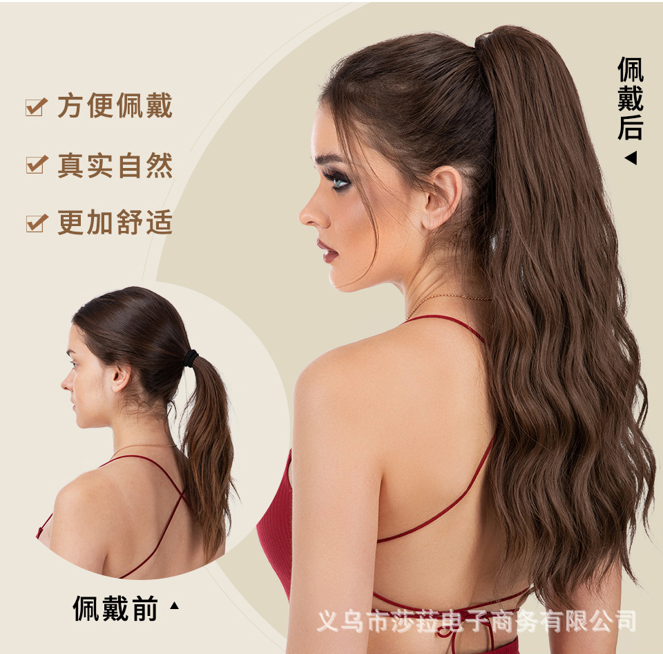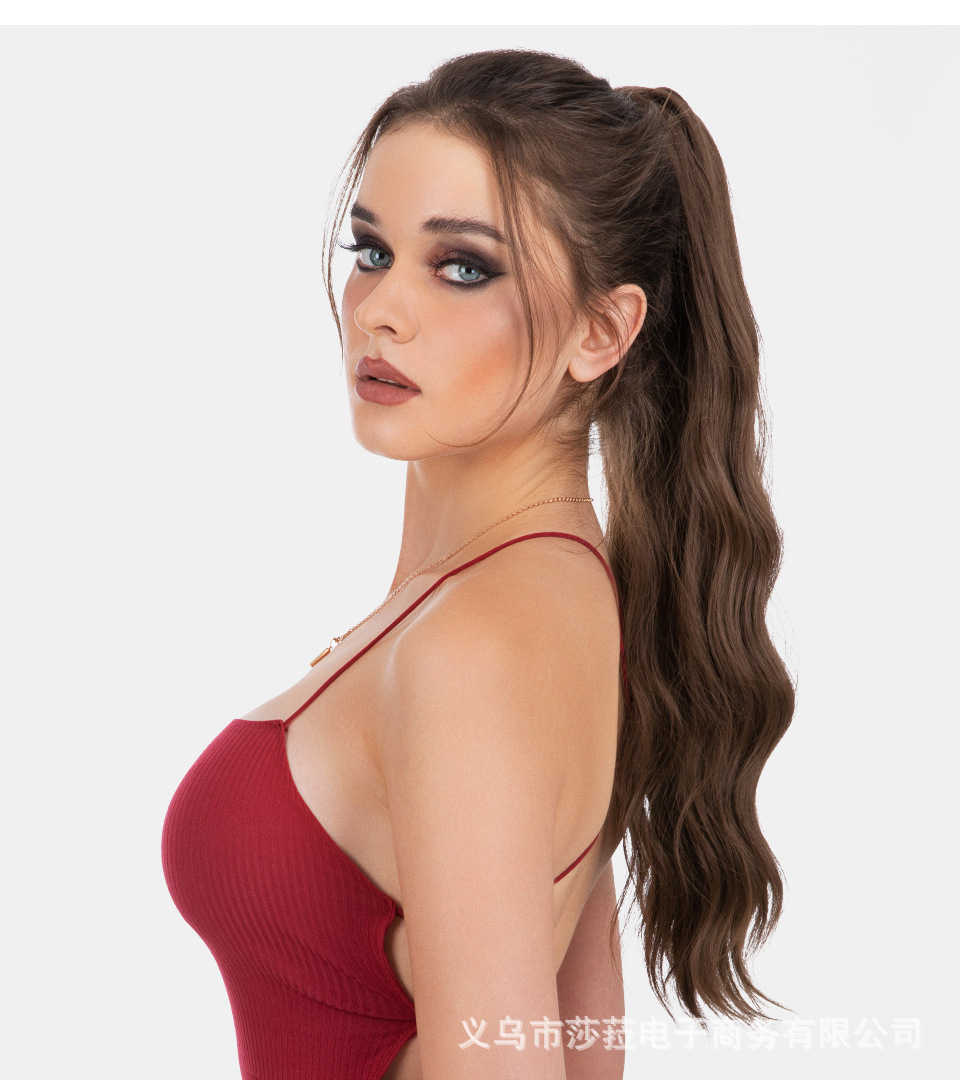 Pelucas de cola de caballo estilo europeo y americano para mujer, cabello sintético largo y rizado, cola de caballo alta con clip de garra naturalmente esponjosa, directamente del fabricante.