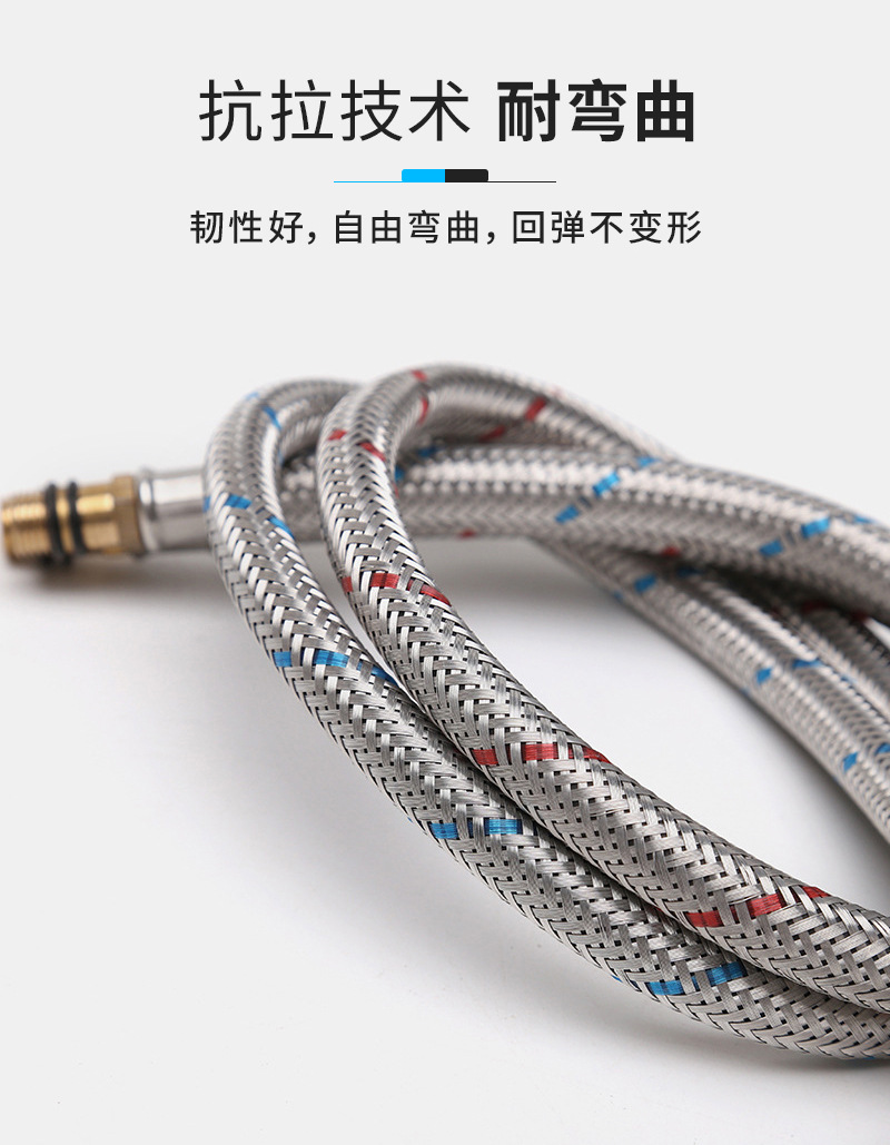 304 acero inoxidable rojo y azul trenzado manguera metálica a prueba de explosiones mesa lavabo grifo frío y caliente tubo de entrada de agua tubo de alambre de acero