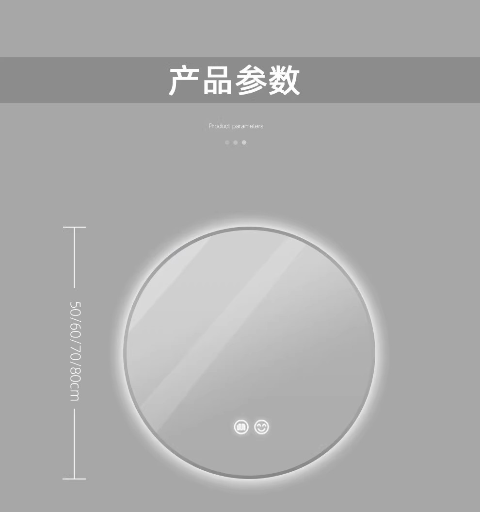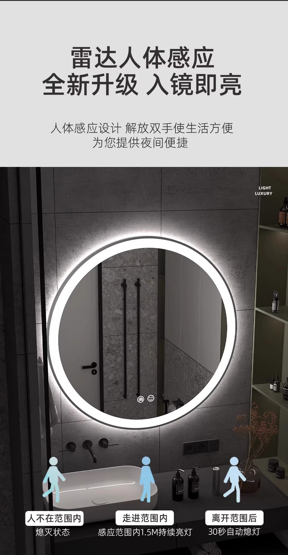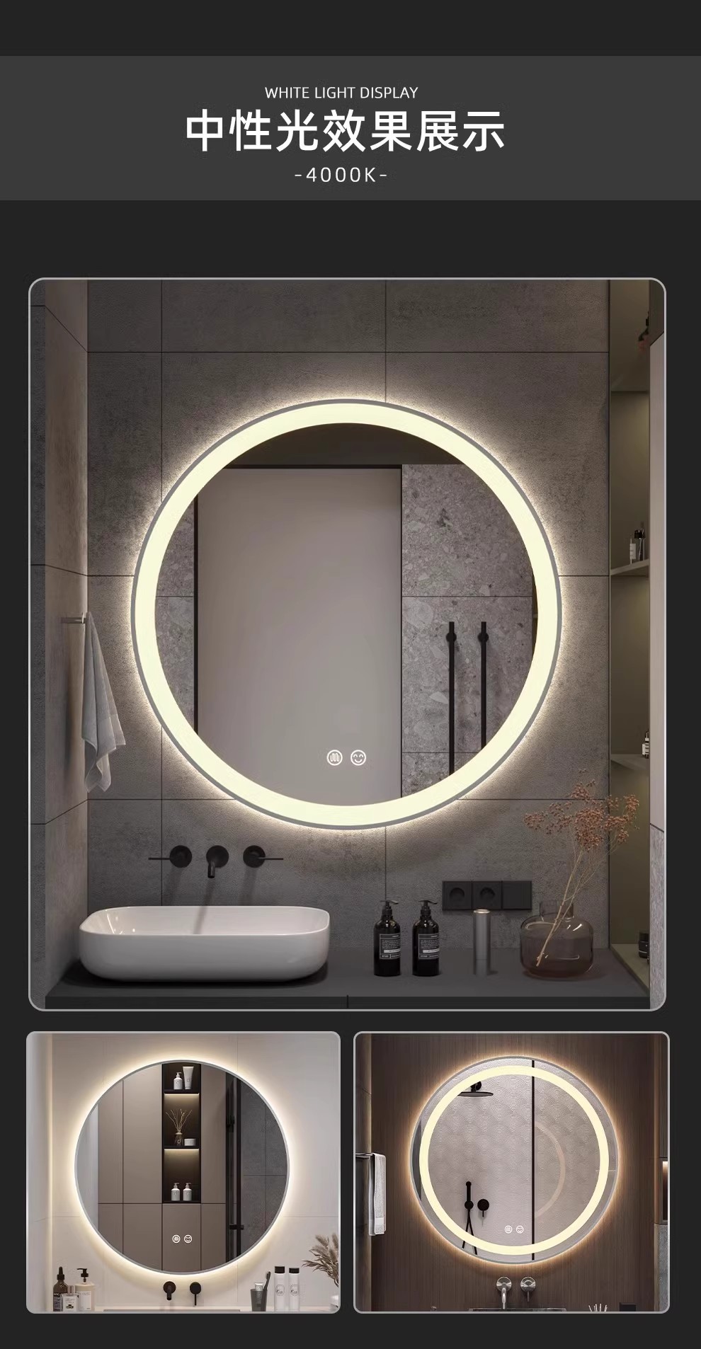Espejo redondo inteligente con marco de luz LED espejo de baño pantalla táctil antivaho espejo de baño de maquillaje de baño sin perforación
