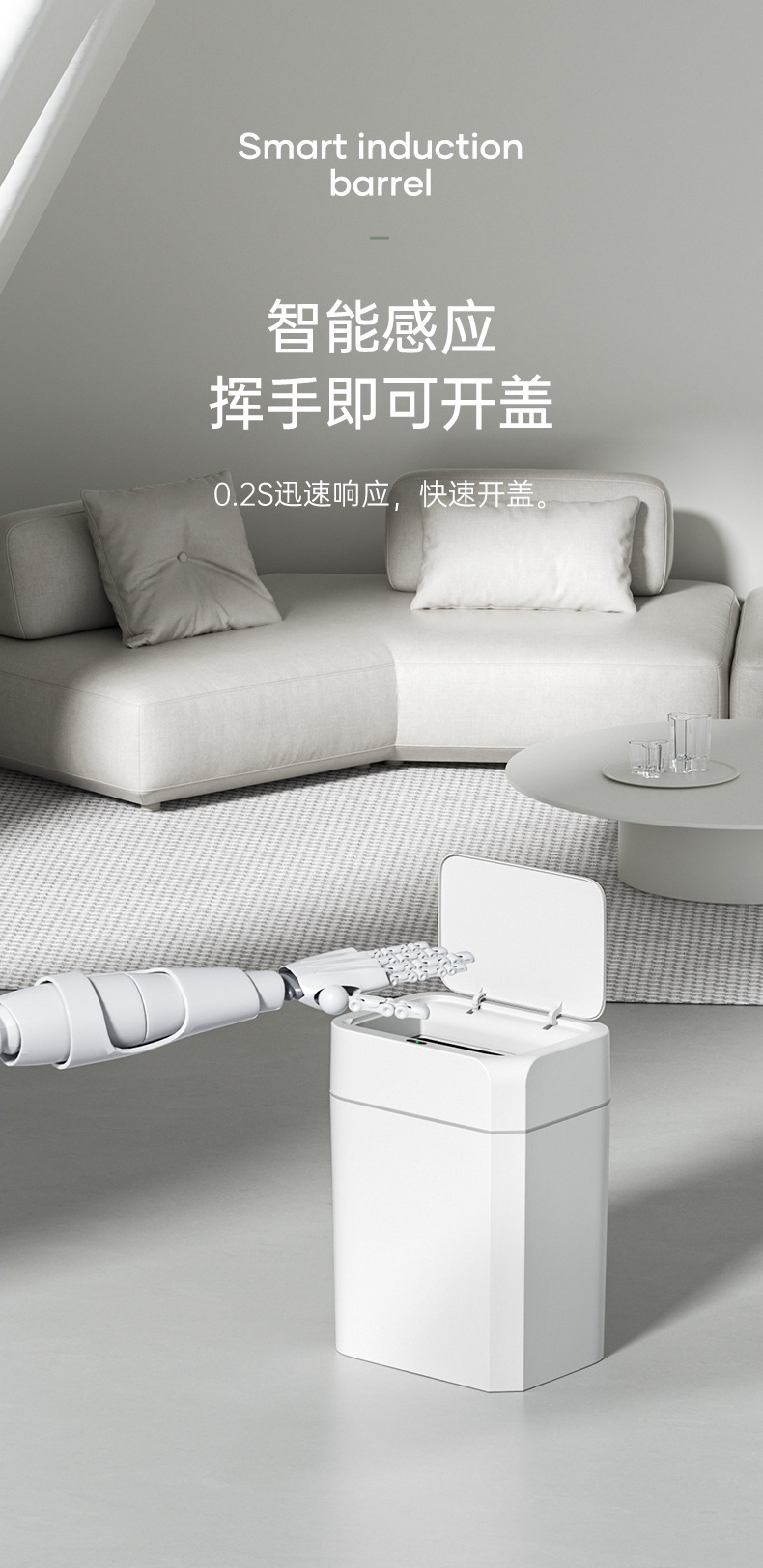 tolva de basura de inducción inteligente para cocina doméstica y baño de gran capacidad sellado esterilizante hendidura tolva de basura inteligente