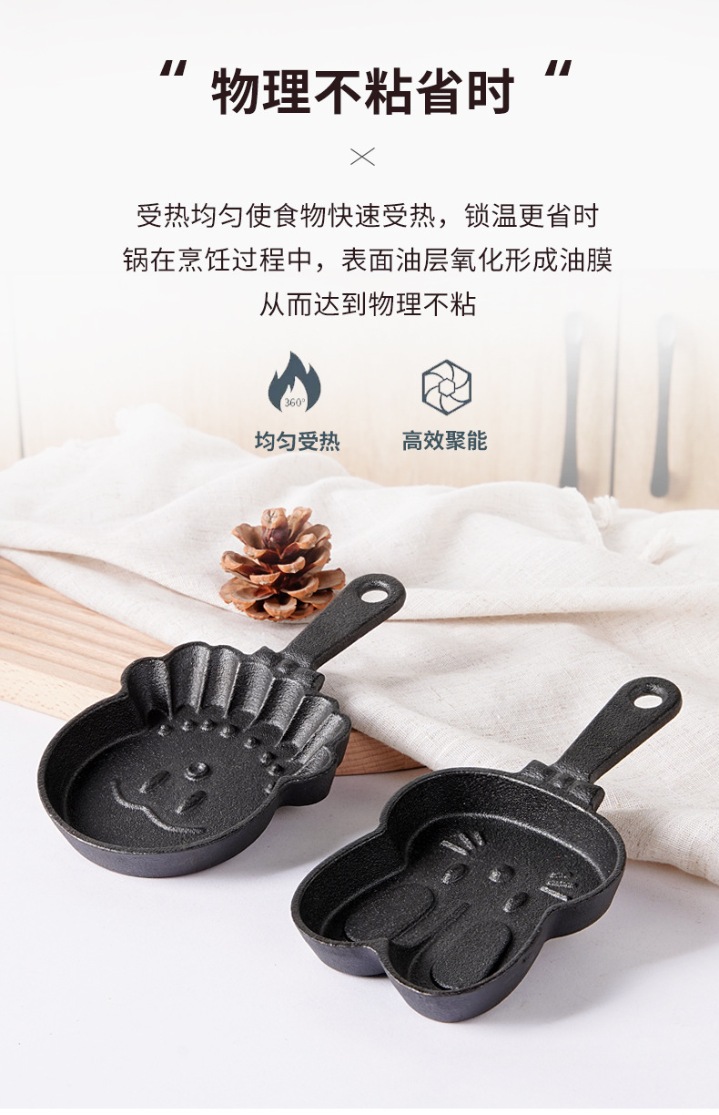 Pequeña felicidad mini desayuno casero olla de huevos antiadherente una variedad de hierro fundido de dibujos animados sartén plana
