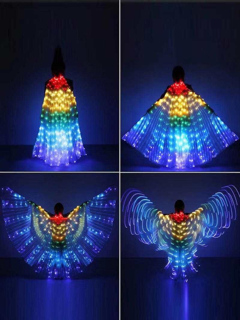 Halloween LED iluminado alas grandes alas 360 grados colorido adulto baile del vientre espectáculo de danza capa alas doradas