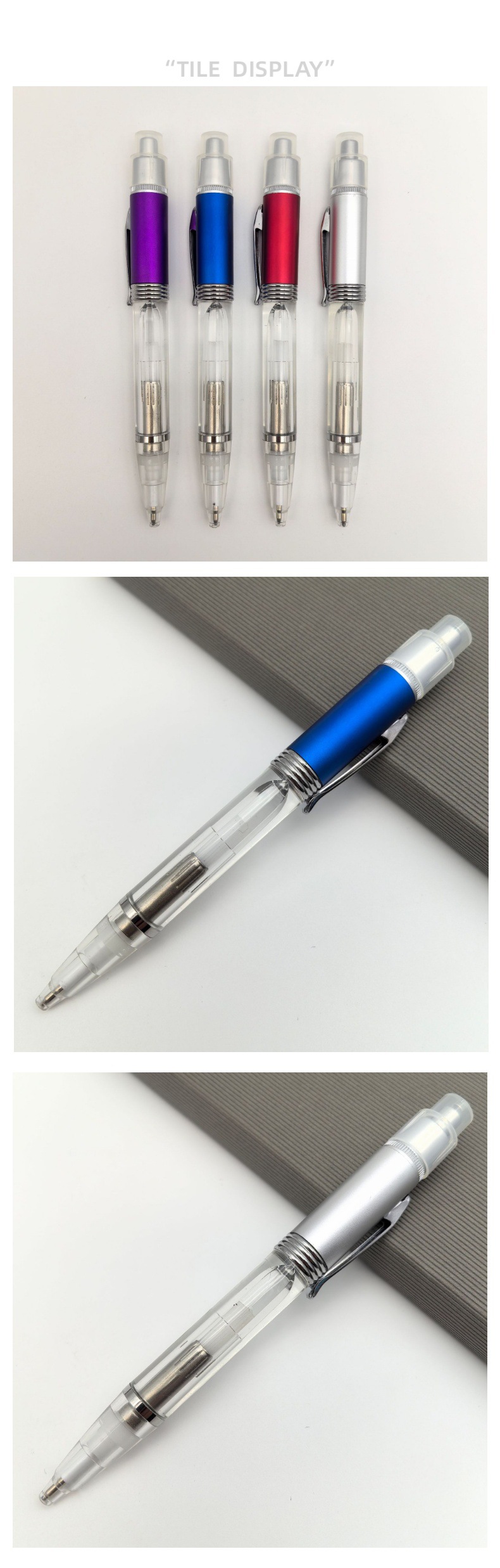 Lámpara de colores creativa bolígrafo publicitario acrílico material transparente imprimible bolígrafo LED de color