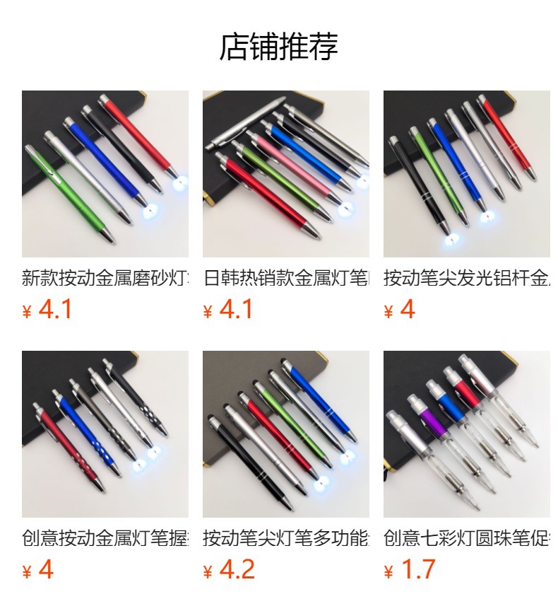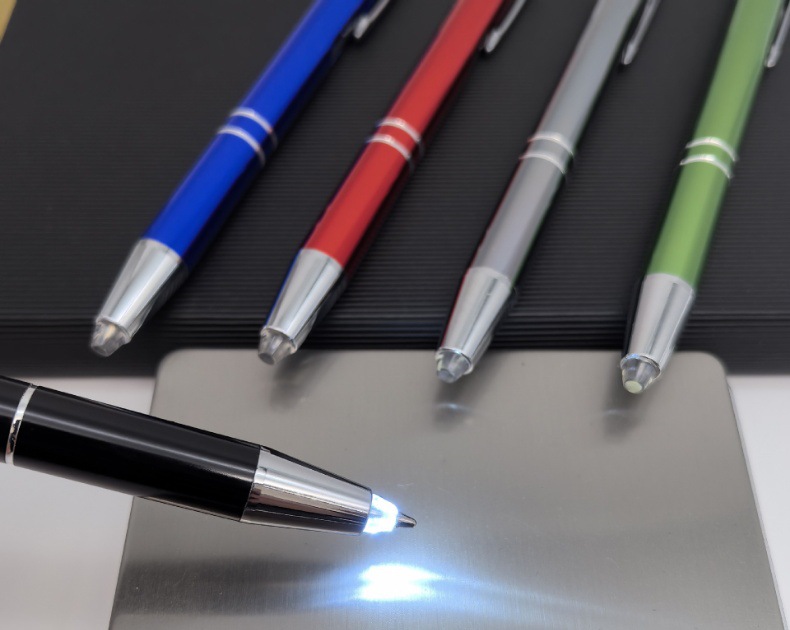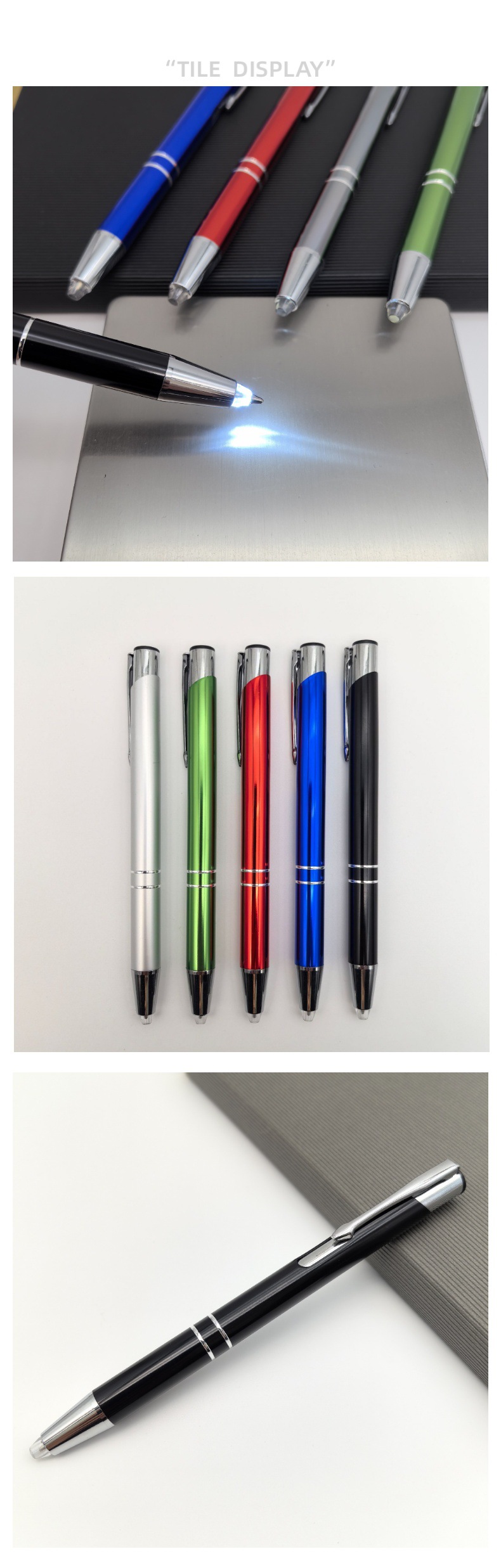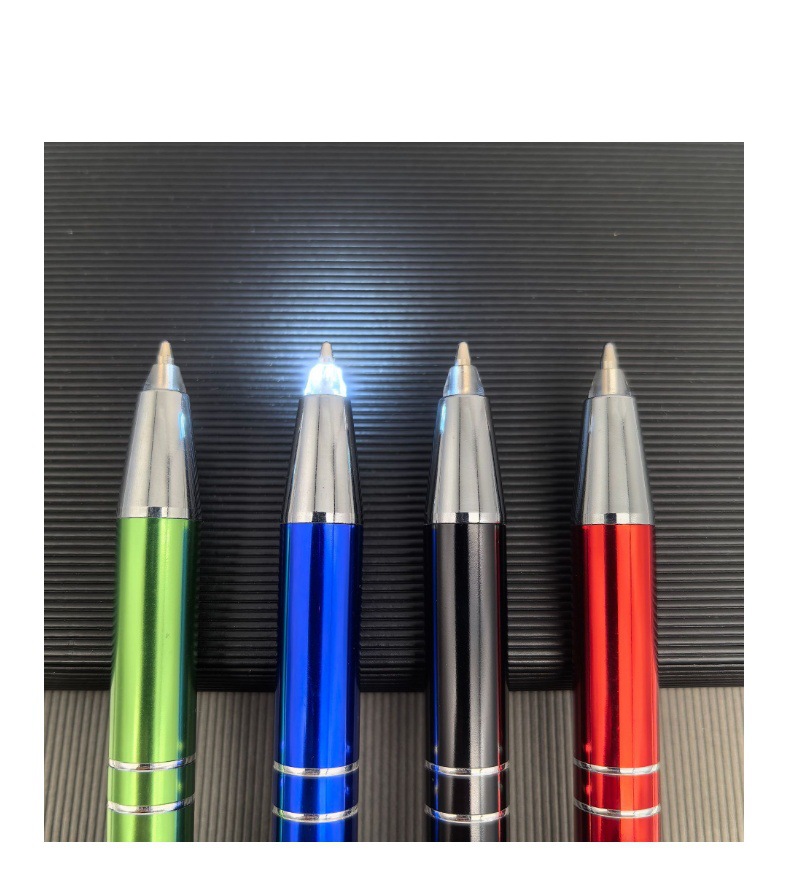 Presione la punta de la pluma luminosa barra de aluminio pluma metálica lámpara LED pluma de regalo de metal logotipo láser personalizado pluma metálica