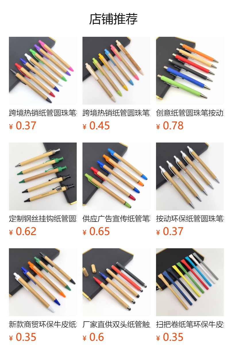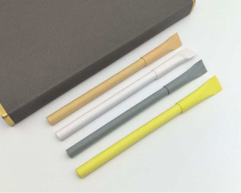 Protección ambiental mayorista pluma de publicidad de papel entero escobilla cabeza de pluma de tubo de papel cruzada venta caliente pluma de hotel kraft multicolor opcional