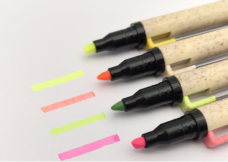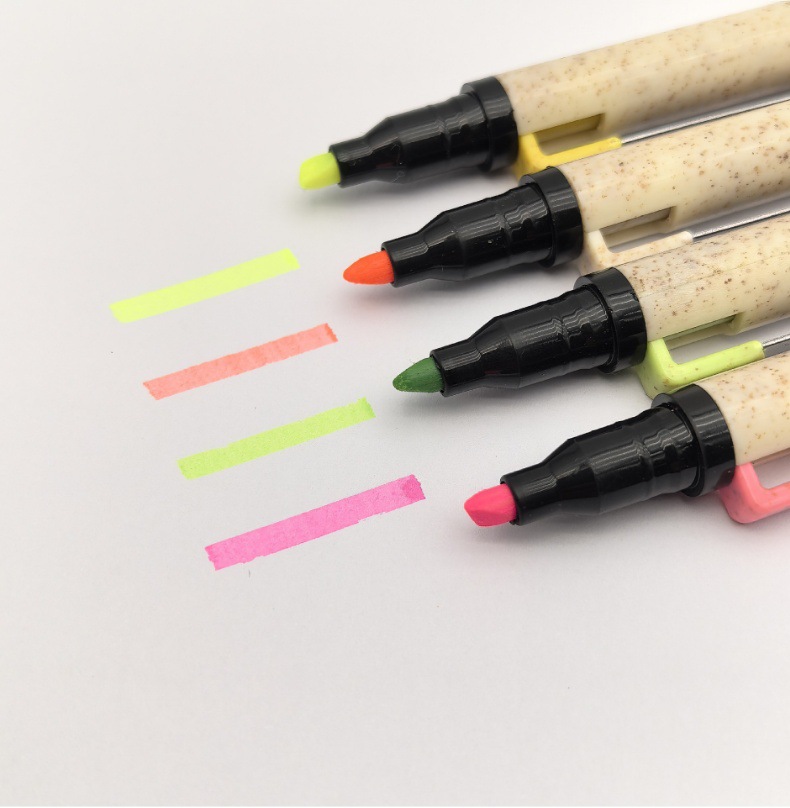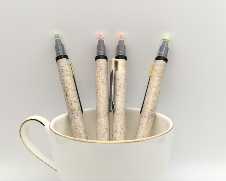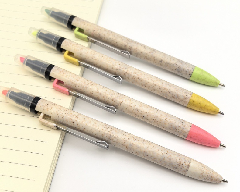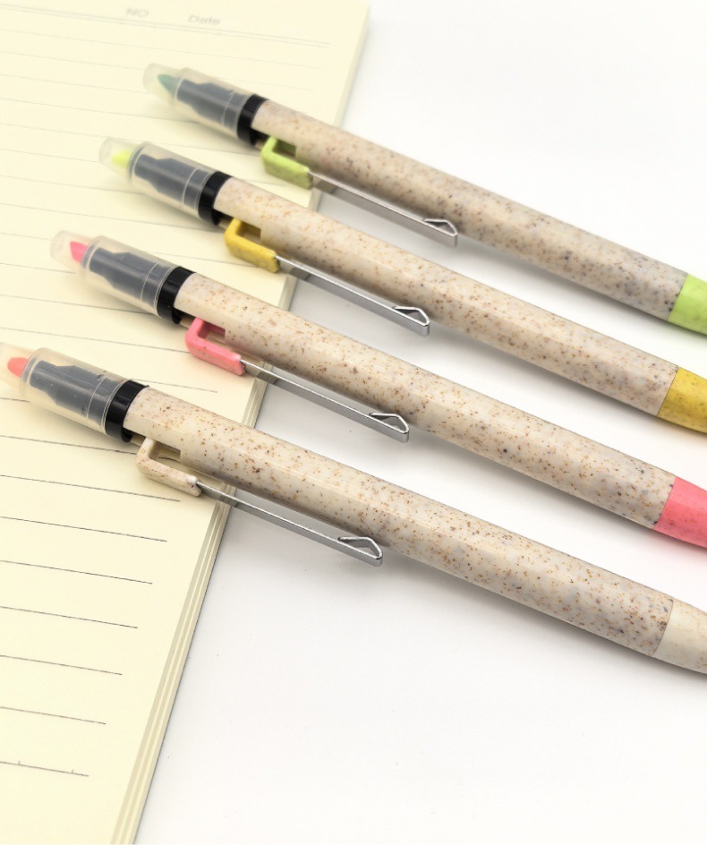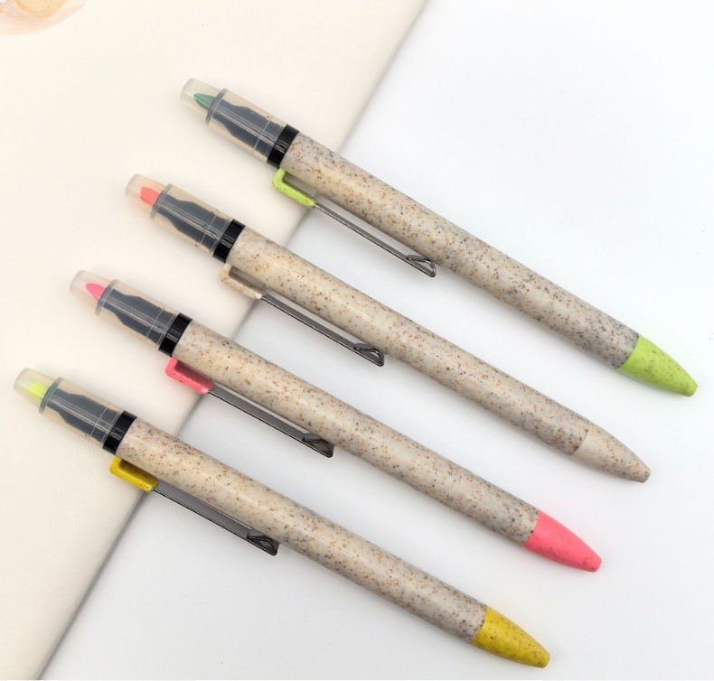 Bolígrafo publicitario de promoción bolígrafo de paja al por mayor ecológico personalizable logotipo de doble cabeza resaltador regalos bolígrafo atómico
