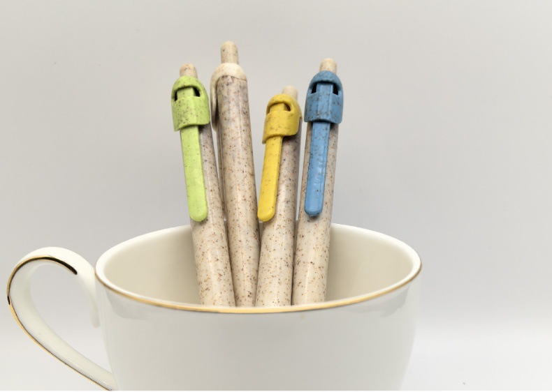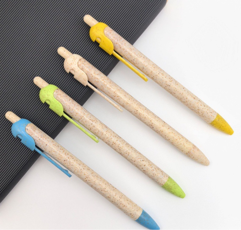 Nuevo material de paja Caballero pluma publicitaria Caballero máscara de modelado bolígrafo de palma verde pluma de trigo al por mayor