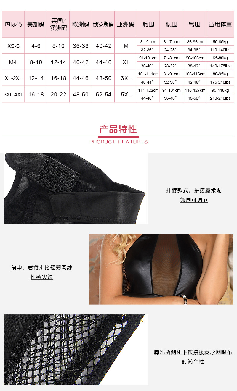 Plus tamaño de lencería sexy al por mayor de cuero apretado cadera falda sexy club nocturno de Las Mujeres Halter pijamas grasa mm200 kg