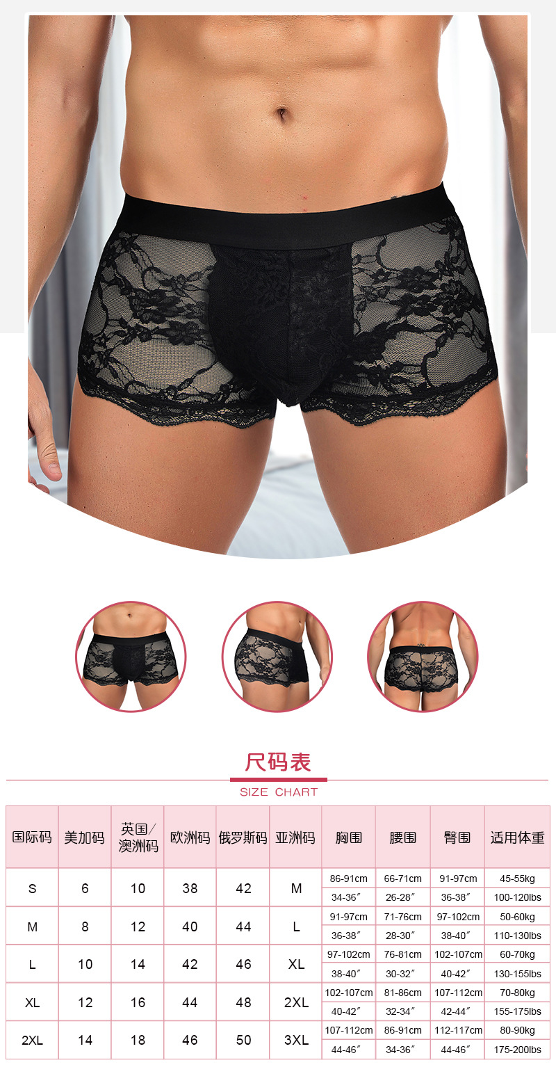 Amazon Europa y los EE.UU. Pantalones sexuales de encaje transfronterizas masculinas sexy triángulo hueco pantalones de seducción transparentes