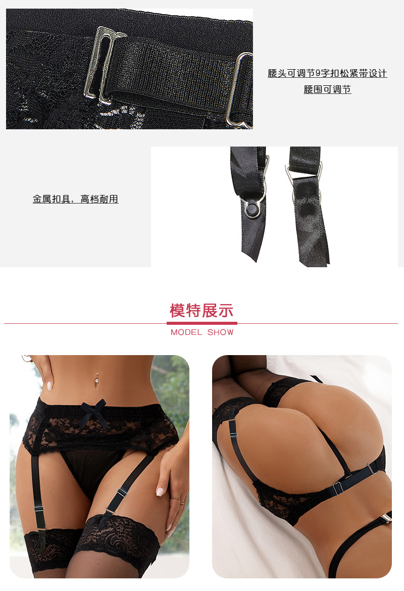 Al por mayor un cabello más grande de 200 kg ropa interior de metal hebilla de encaje sexy cinturón con trozos