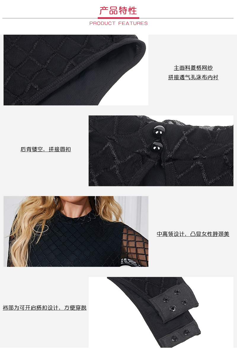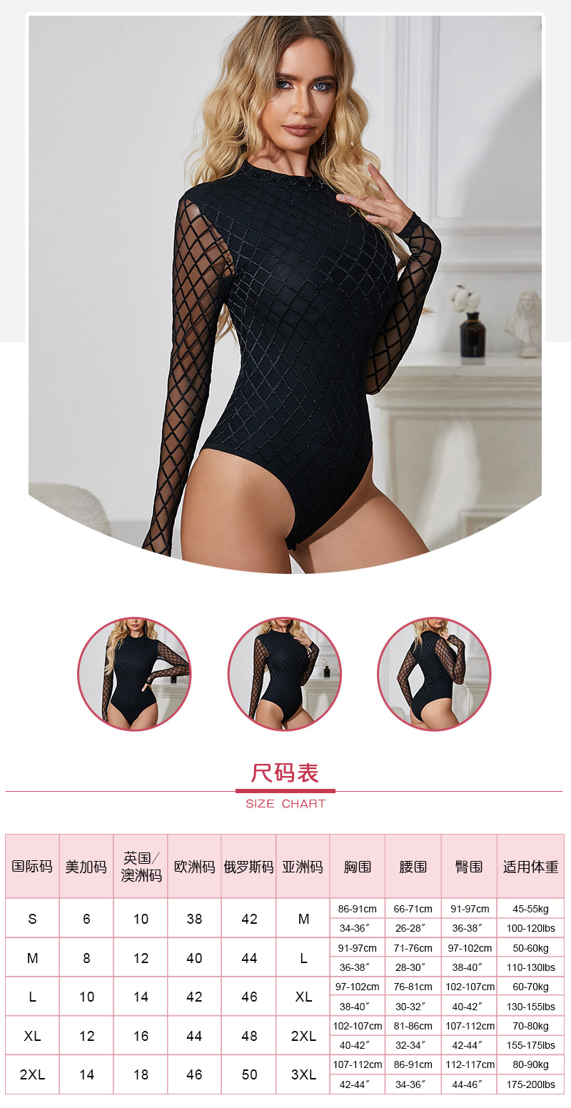 Comercio exterior sexy Lencería manga larga rombo slim fit sexy mono moda negro adelgazamiento Delgado desgaste interior desgaste exterior mujeres
