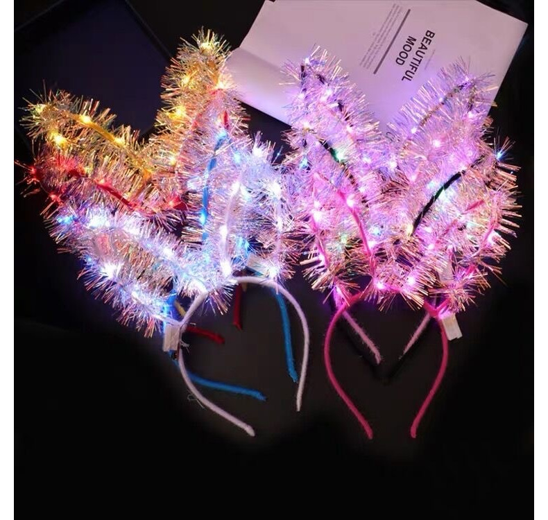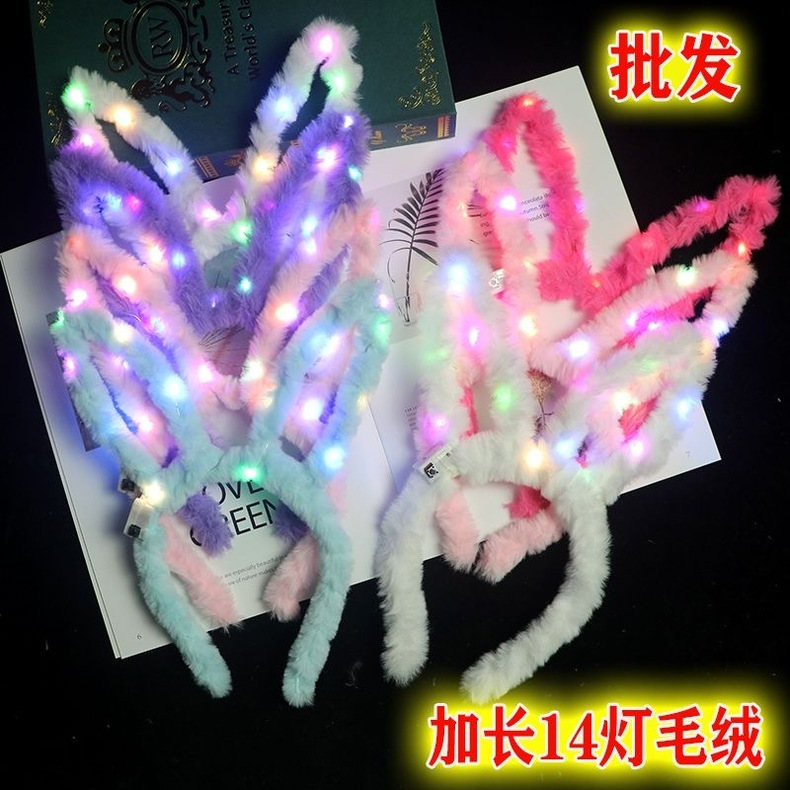 Nuevo luminoso alargado 14 luces de peluche orejas conejo diadema flash punto escénico puesto en el mercado nocturno Venta caliente suministro al por mayor