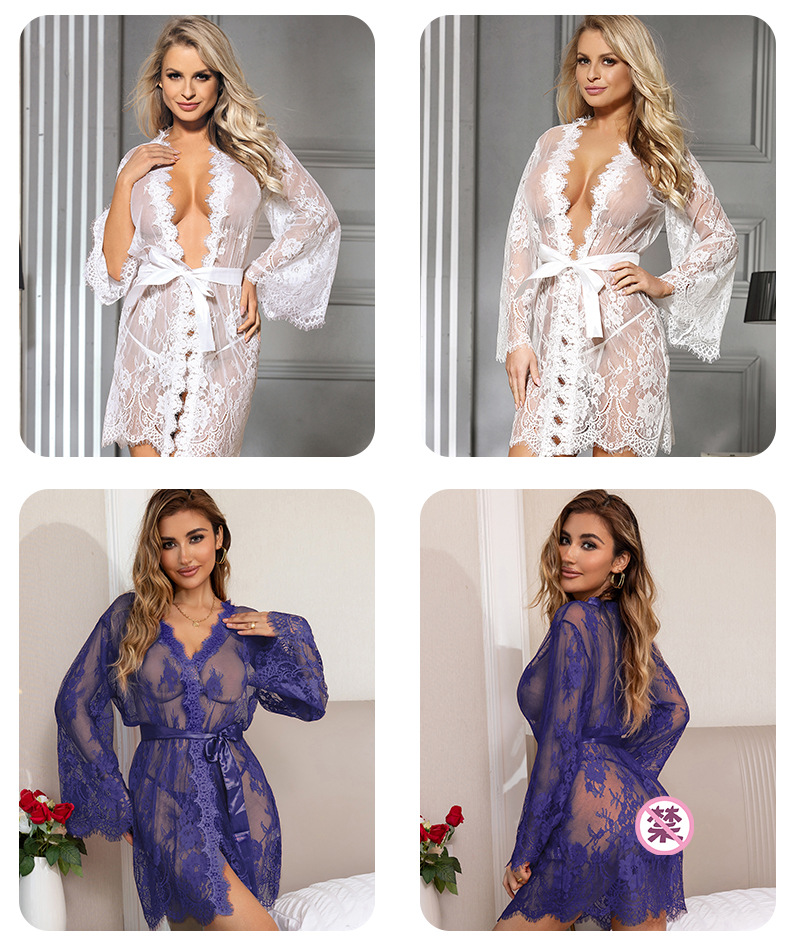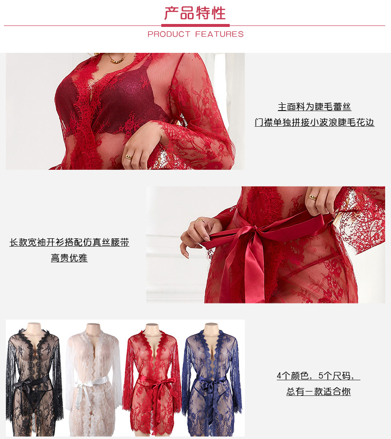Europa y América más tamaño lencería sexy de manga larga pijamas de encaje sexy perspectiva Rebeca camisón Amazon Supply 80528