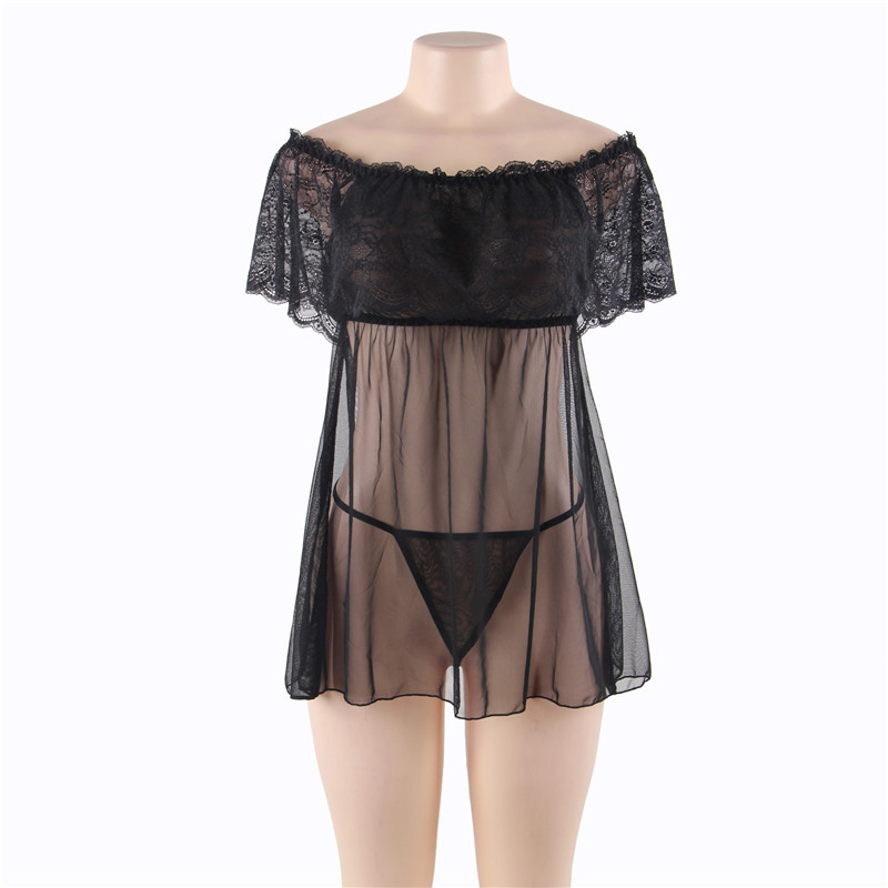 Amazon ropa interior sexual transfronteriza tamaño grande sexy hombro corto pijama malla transparente pura quiere pijamas en stock