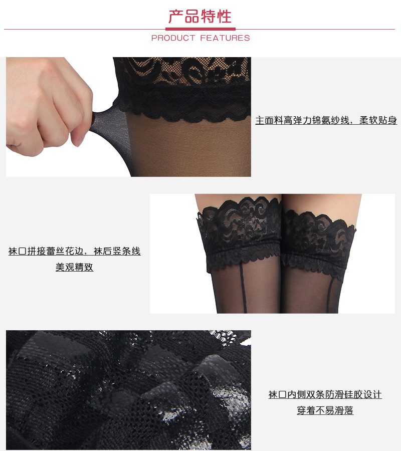 Comercio exterior calcetines de sexo damas encaje sexy línea vertical de seda seda anti-deslizante medias de seda negra stock al por mayor