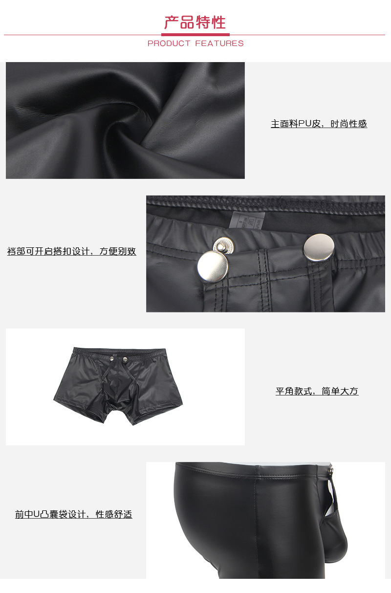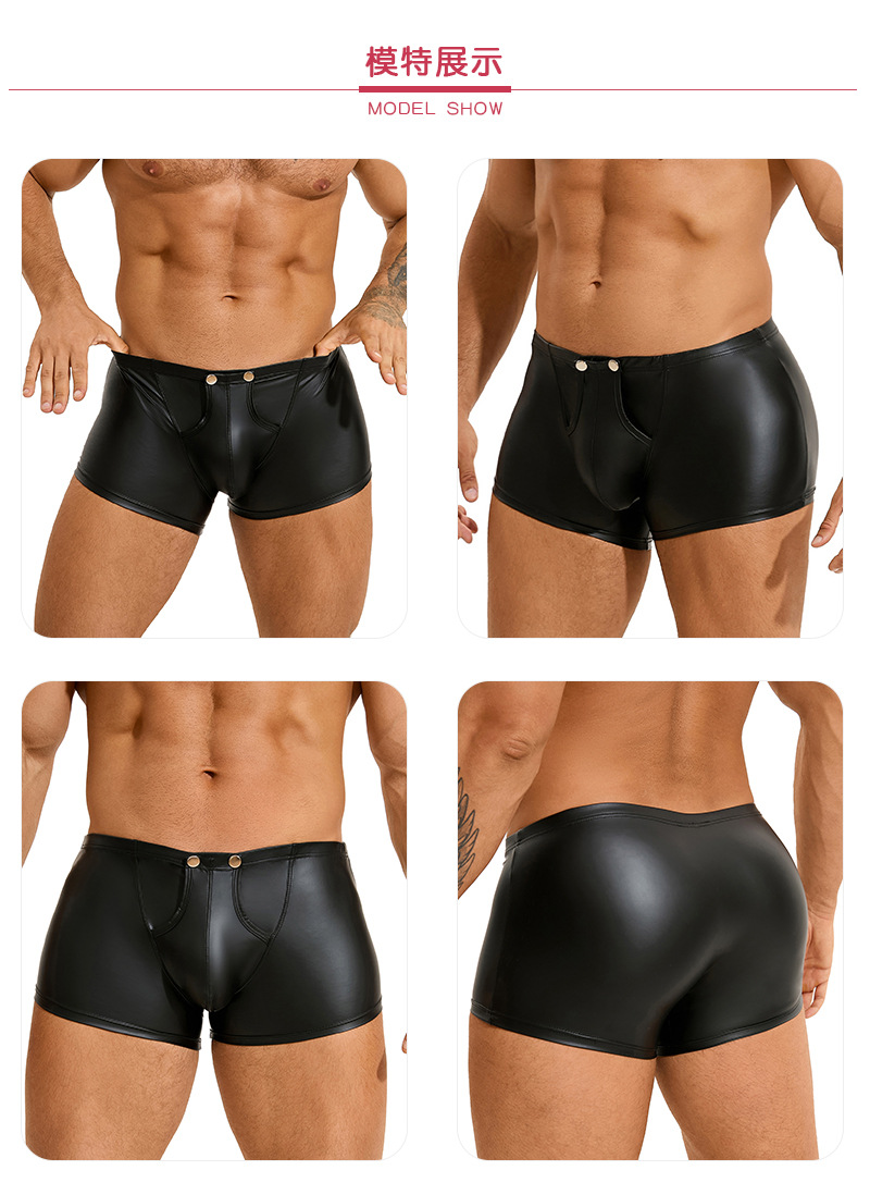 Transfronterizo Amazon sexy cuero lacado hombre pantalones de ángulo plano imitación de cuero interesante botón convexo U fácil de quitar pantalones de ángulo plano