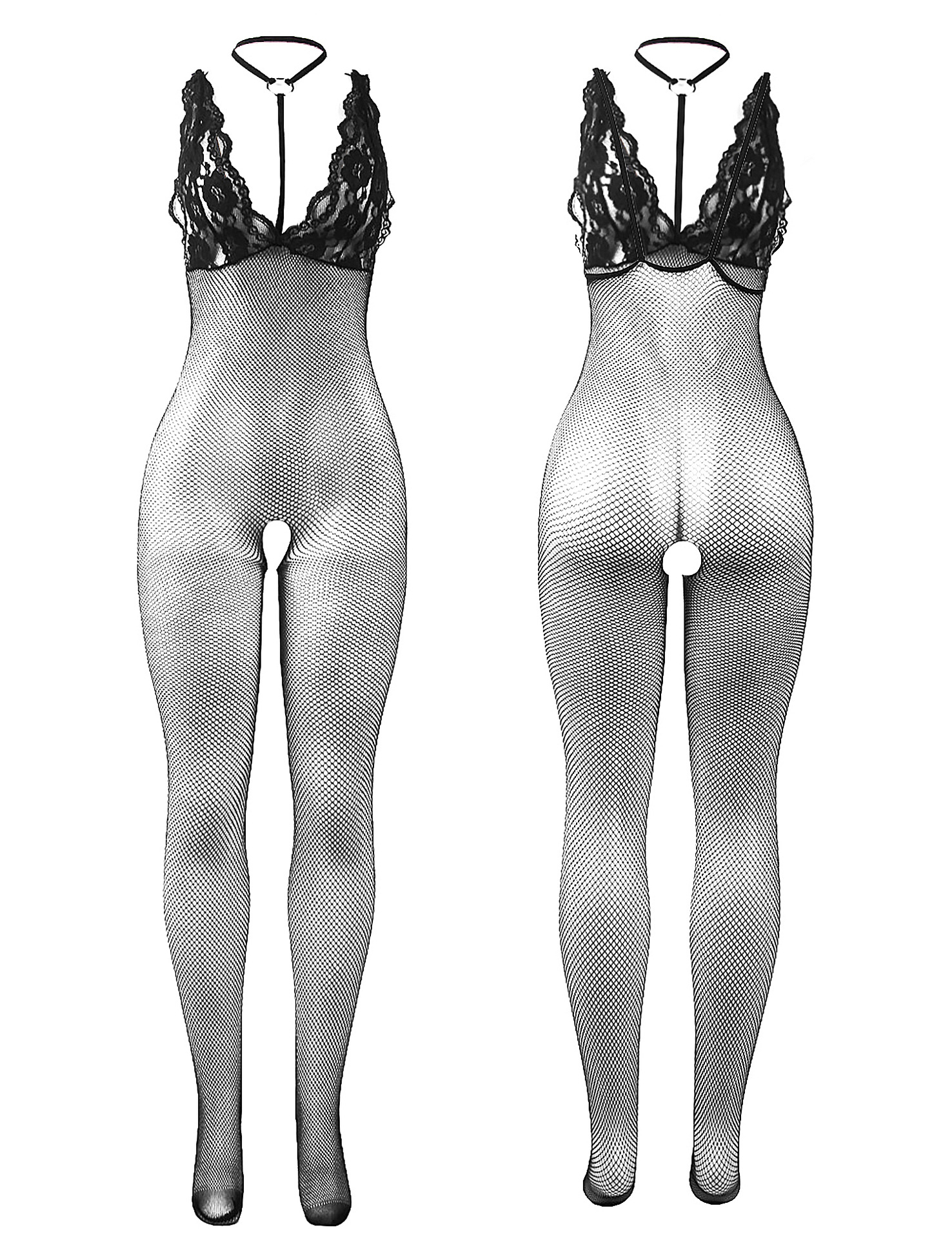 El comercio exterior al por mayor de una sola pieza calcetines de malla sexy honda abierta de una sola pieza lencería sexy encaje de las mujeres red de pesca hueca medias negras