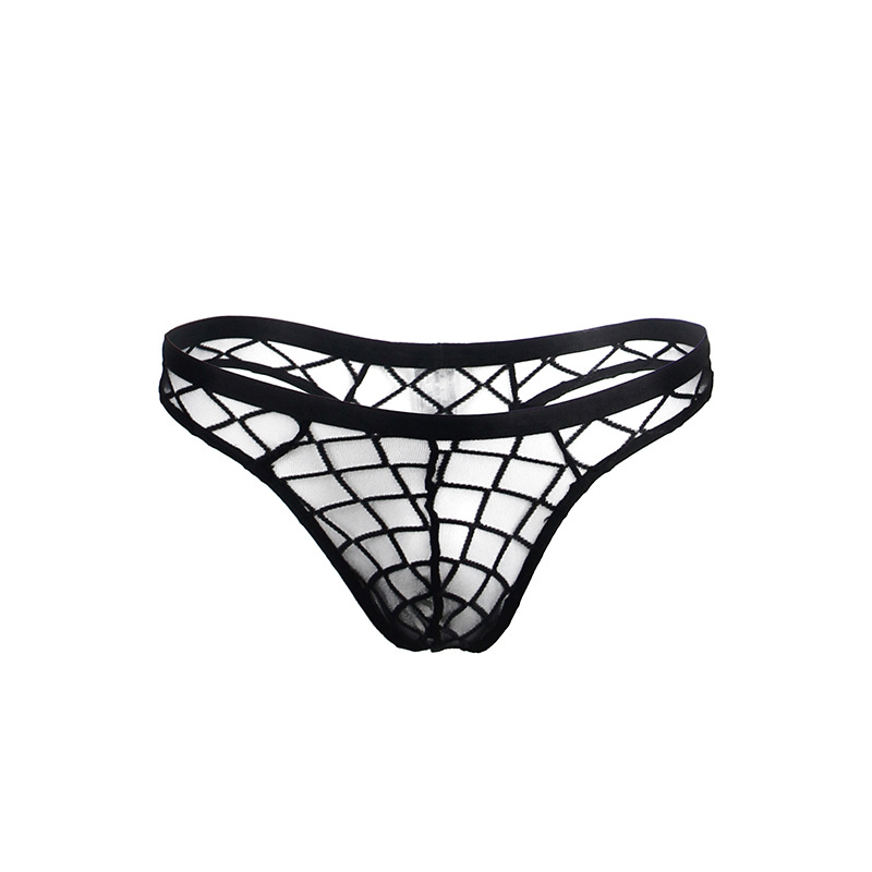 Tangas triangulares transparentes de malla transparente para hombres, pantalones cortos de moda sexy de cintura baja, ropa interior de cabello transfronteriza para hombres de moda