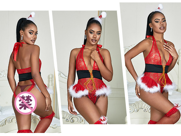Cruz-frontera caliente sexy ropa interior más tamaño encaje sexy Navidad uniforme traje de malla perspectiva mono estilo europeo y americano