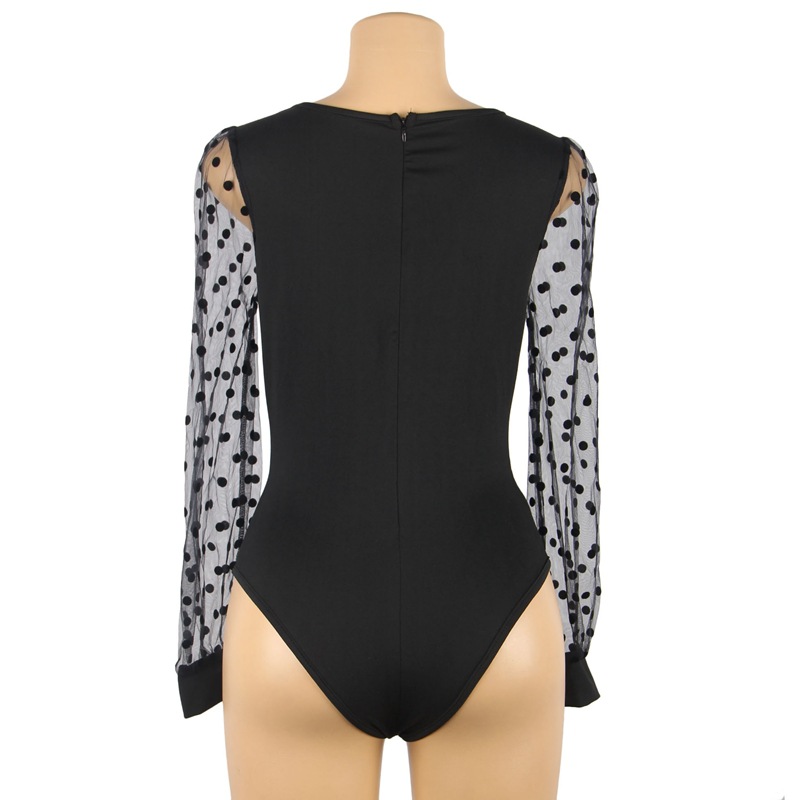Mono de manga larga con lunares y escote profundo en V de Amazon para uso exterior, camiseta básica sexy de talla grande, ropa de estar por casa, pijamas sexys al por mayor