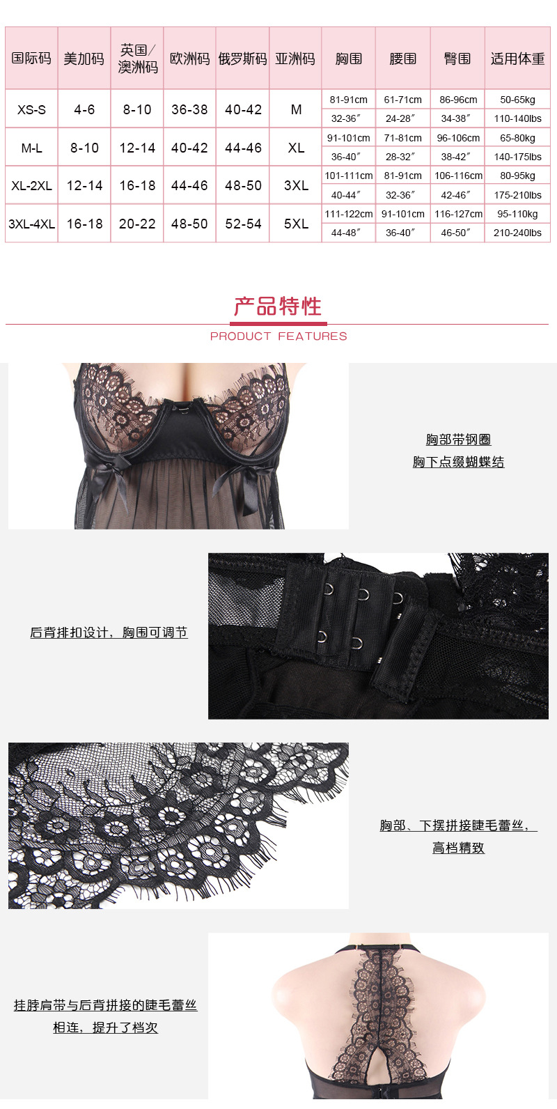 Comercio exterior europeo y americano más tamaño lencería sexy soporte de acero Correa camisón Amazon deseo suministro al por mayor 80636