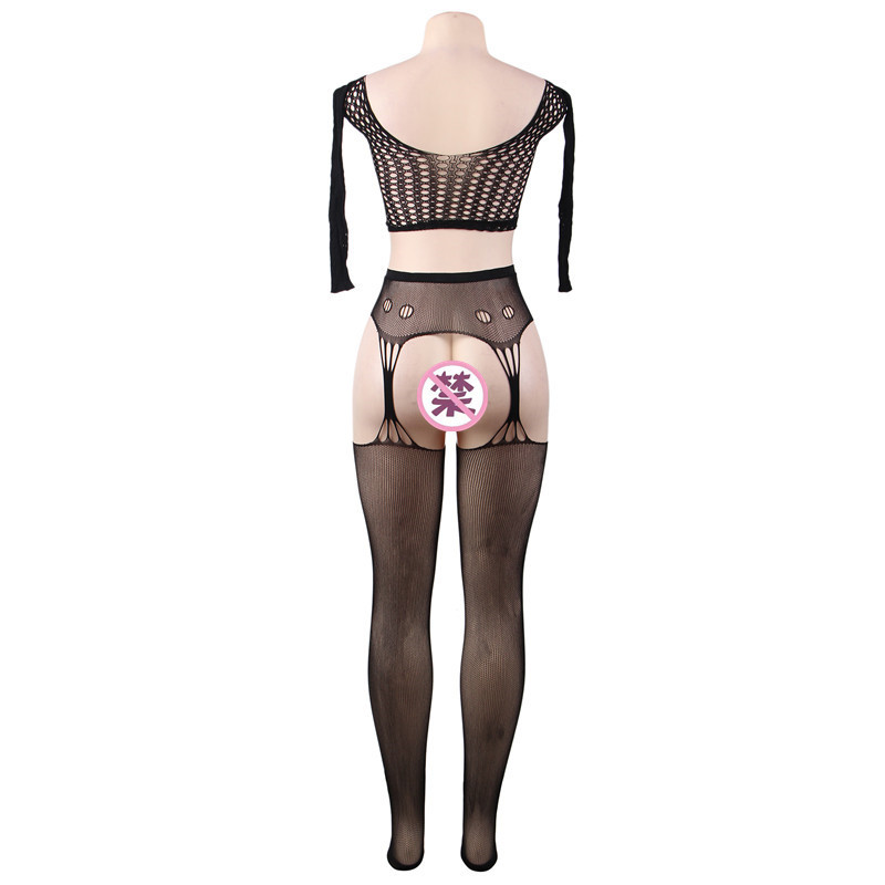 Sexy Lencería seductora mujer hueco de manga larga de malla dividida calcetines traje de malla transfronteriza en stock H3254