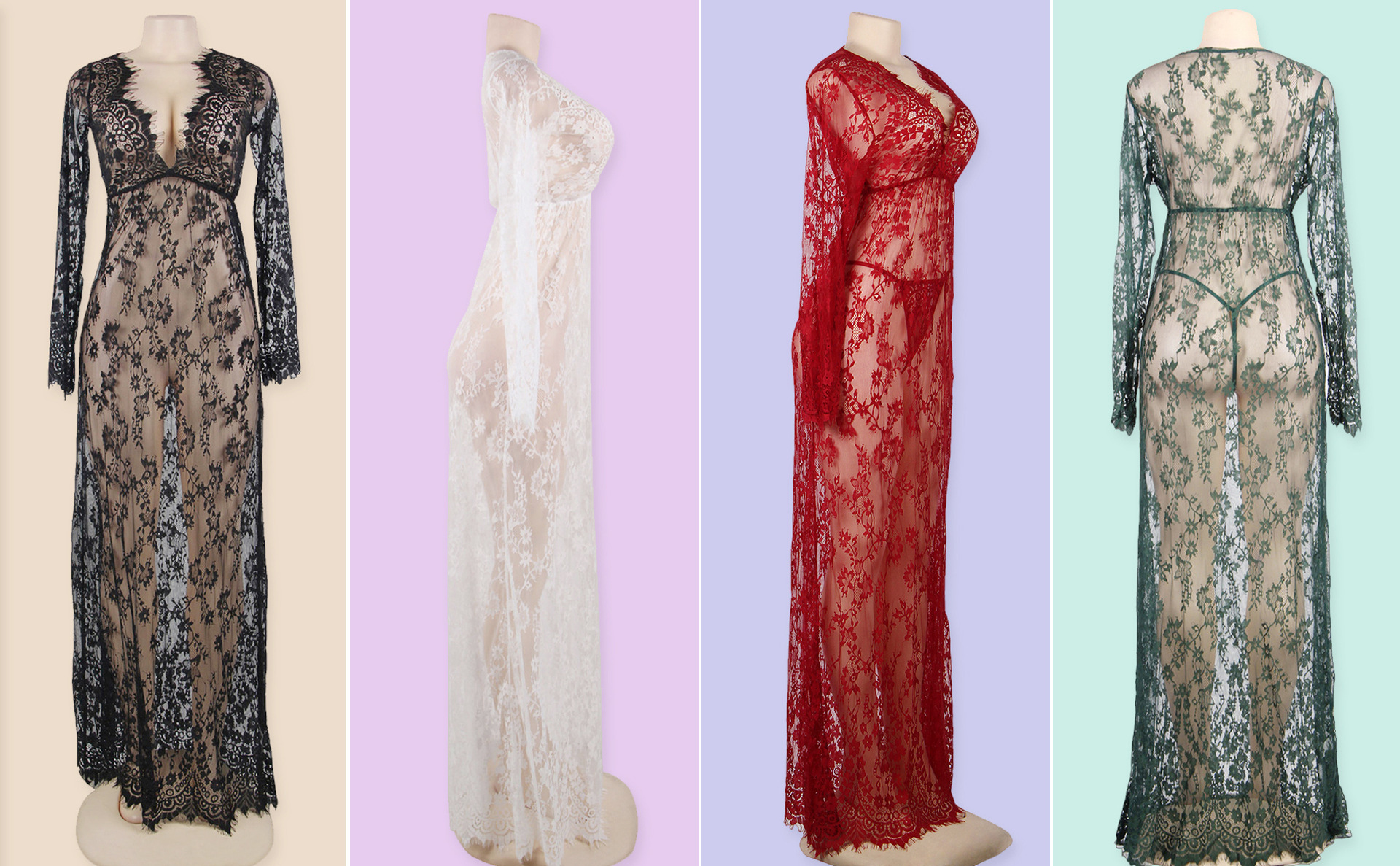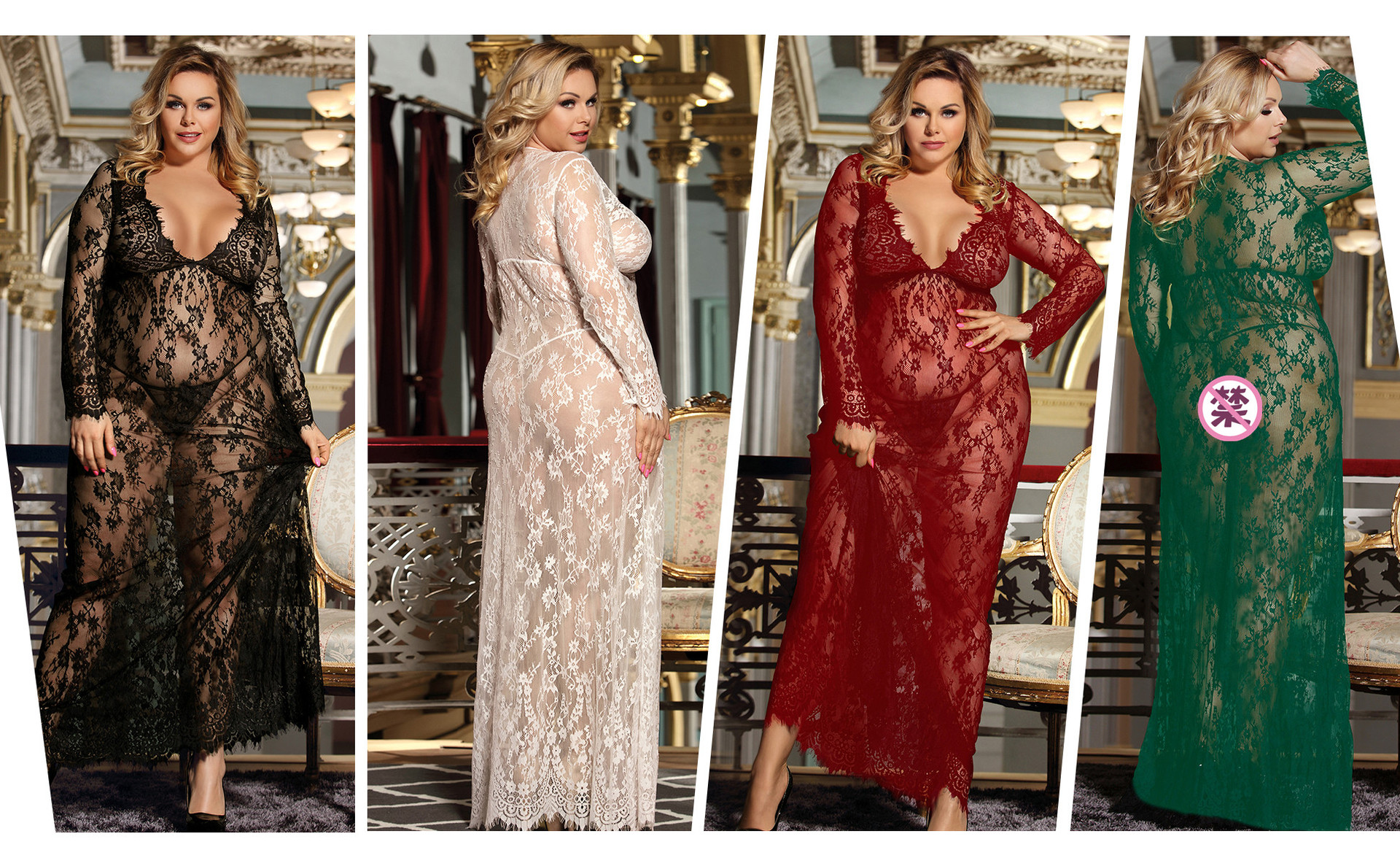 Europa y América sexy lencería sexy camisón encaje largo transparente vestido comercio exterior en stock Amazon suministro 80497