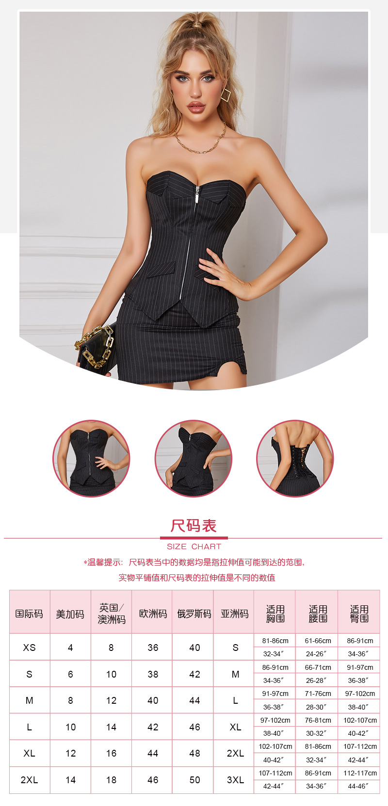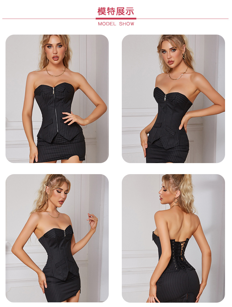 Ropa de forma transfronteriza de moda sexy con tiras con cremallera, vestido corto, cintura apretada, abdominal