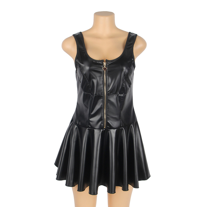 Productos de explosión transfronterizos europeos y estadounidenses, ropa interior femenina de tamaño grande, piel PU, cremallera, pijama sexy, vestido de moda de discoteca