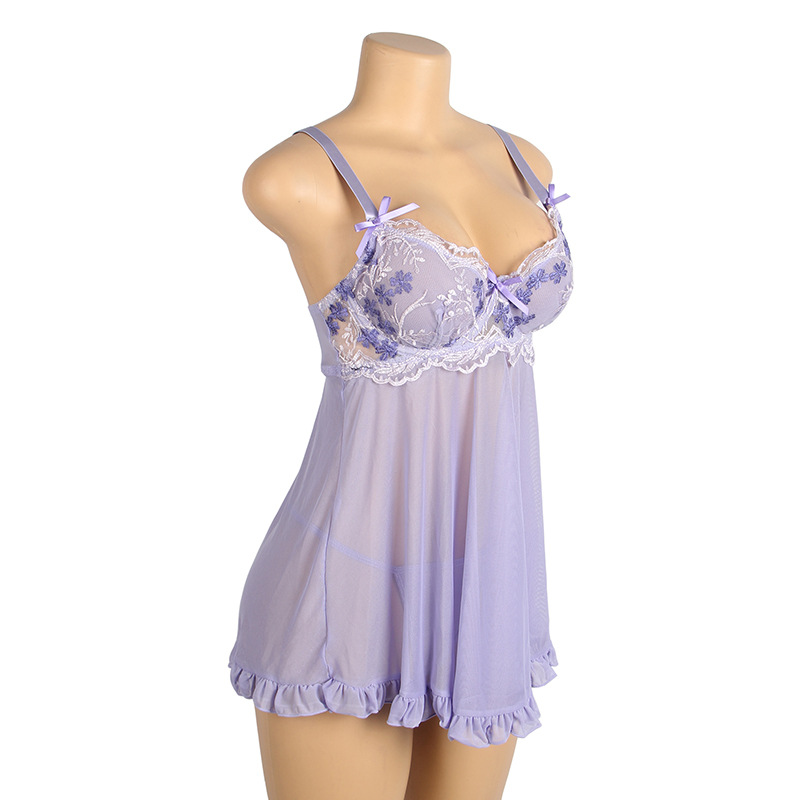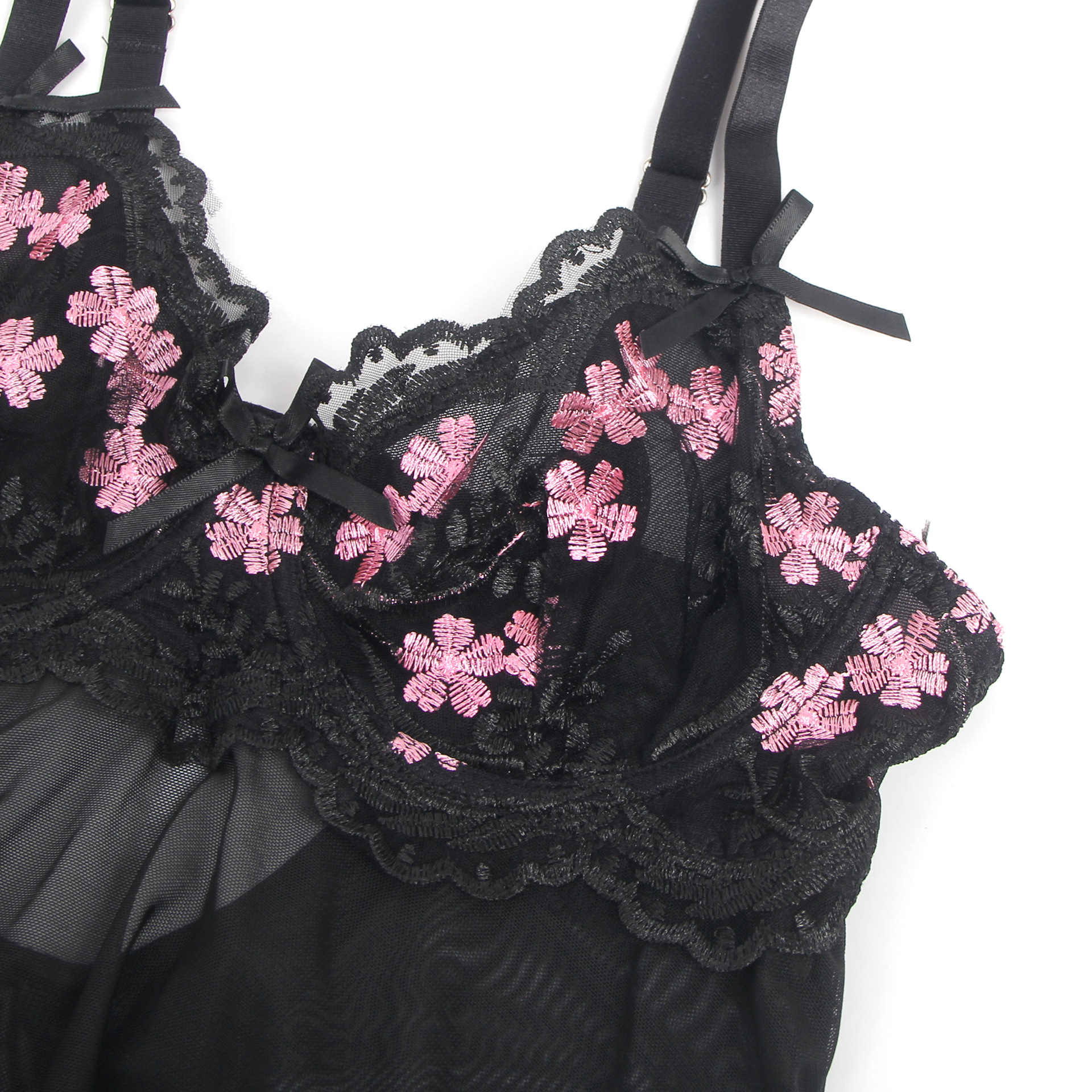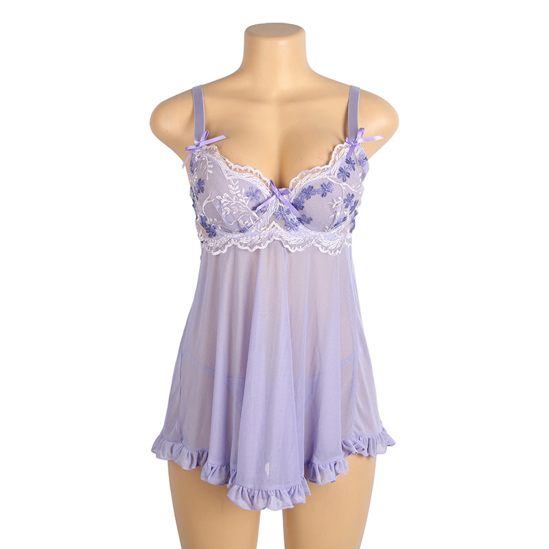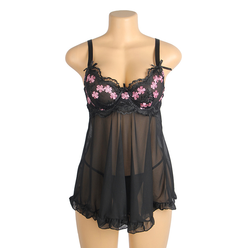 Más tamaño sexy Lencería Correa camisón malla transparente sexy espalda hendidura pijamas de las mujeres hermana gorda anillo de acero push up