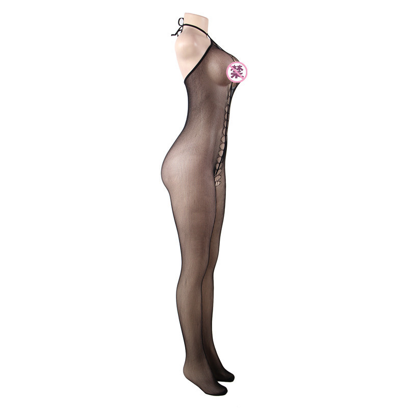 Comercio exterior más tamaño jacquard sexy lencería sexy Correa Halter de mujer Calcetines de malla de una pieza entrepierna abierta ropa de malla libre 3246
