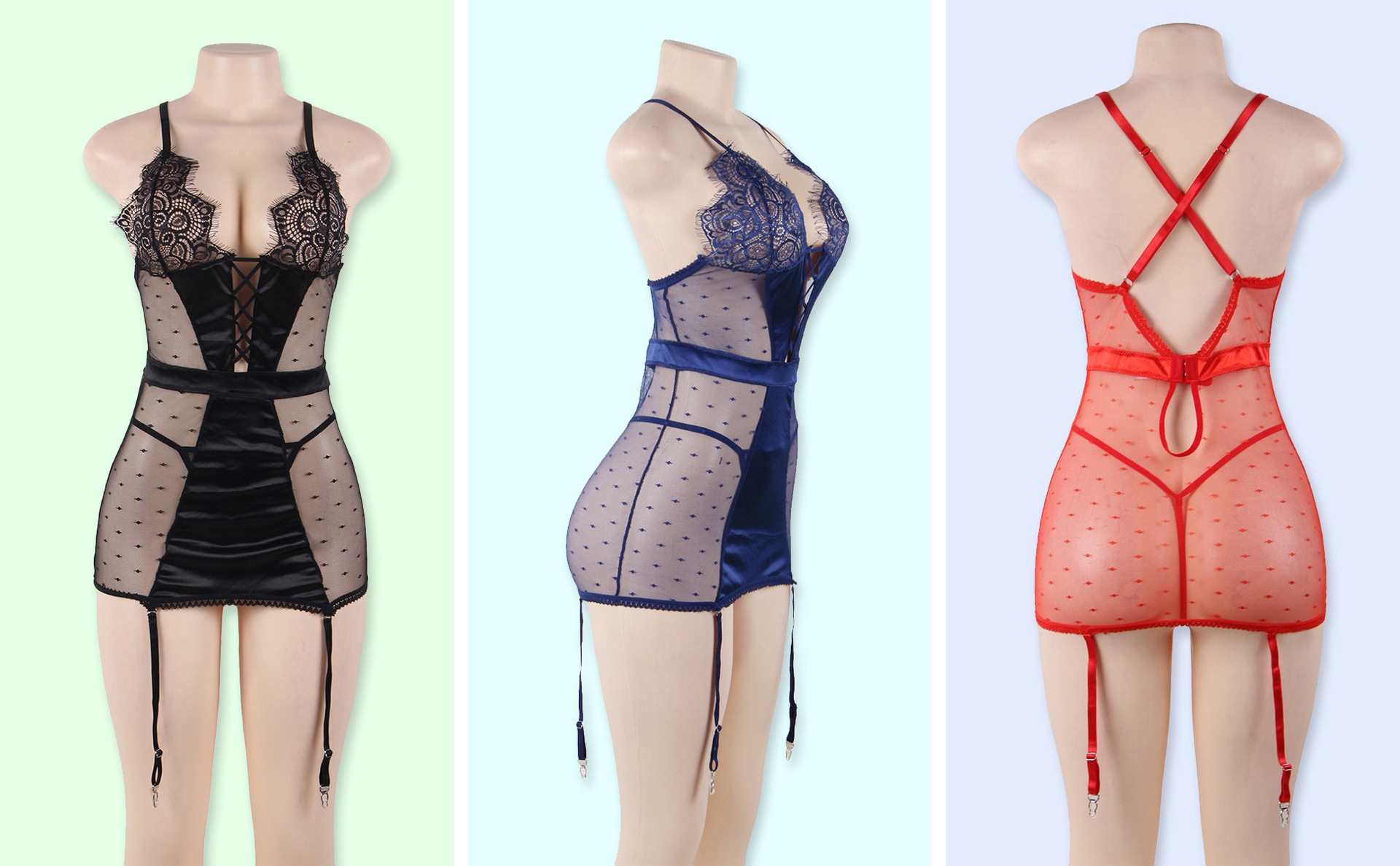 Sexy underwire Correa camisón pijamas de encaje europeo y americano Comercio exterior lencería sexy Amazon entrega de una sola pieza 80650