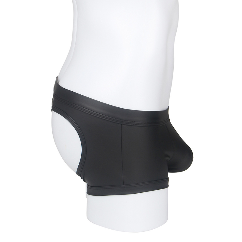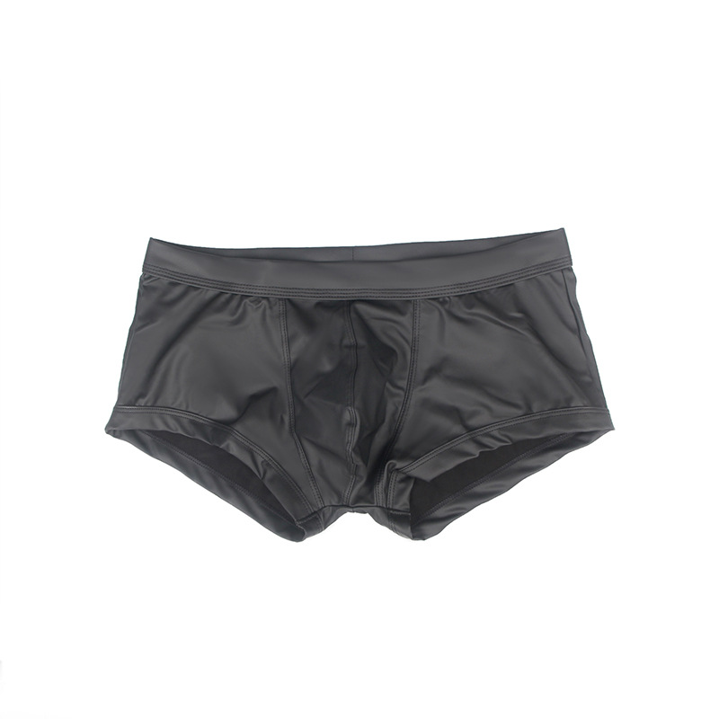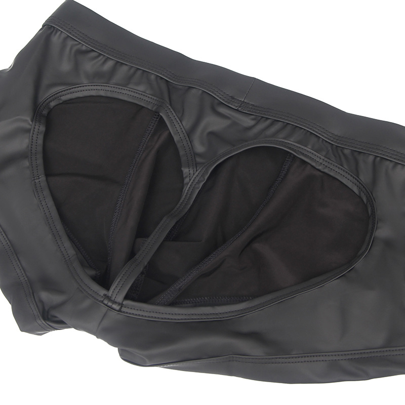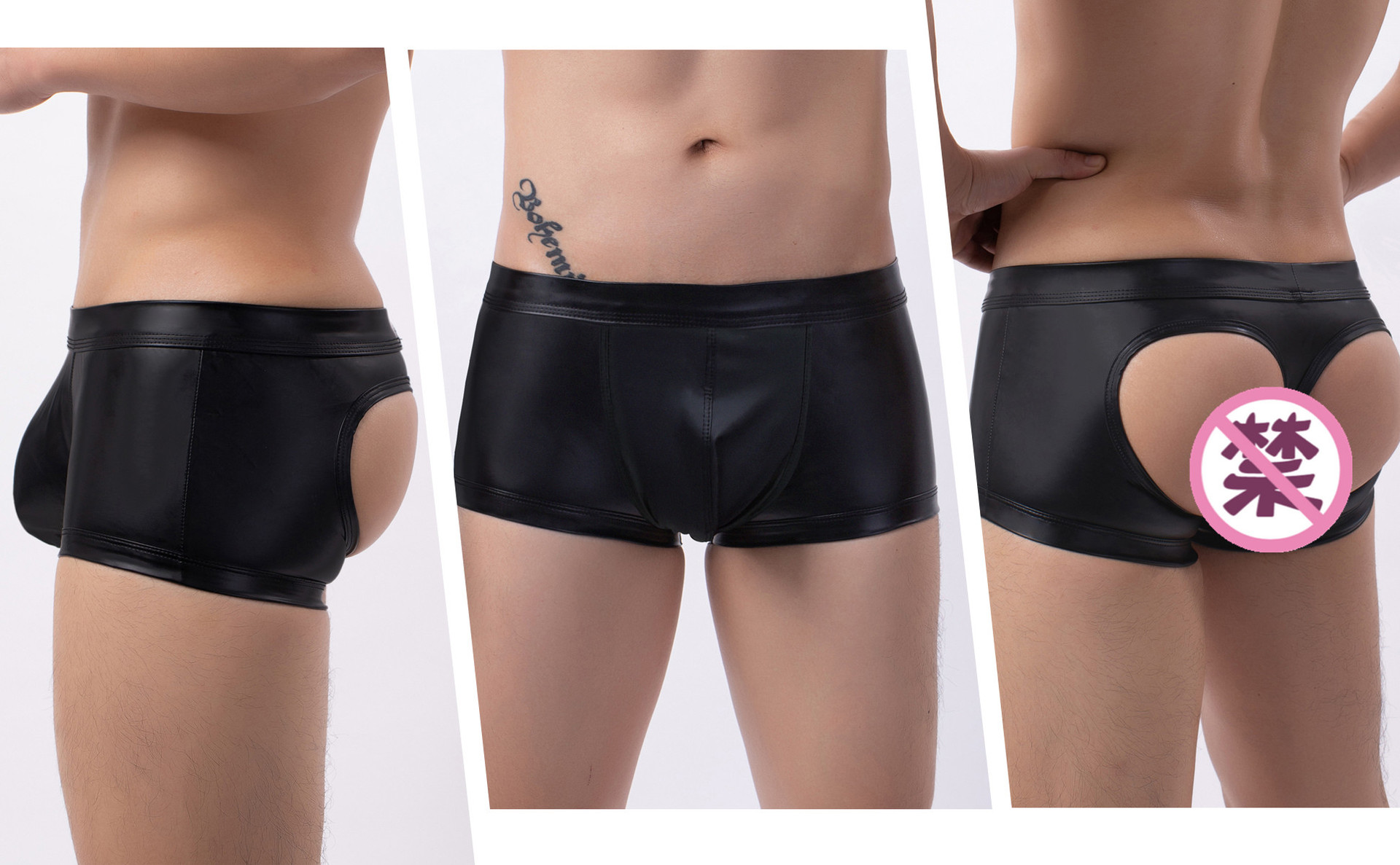 Sexy transfronterizo de gran tamaño nuevo estilo imitación de cuero atrás calzoncillos tipo bóxer huecos transpirables de cintura baja calzoncillos Men Boxer