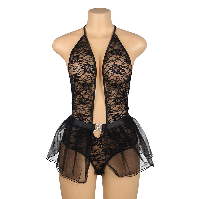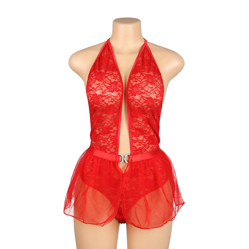Amazon Europa y los Estados Unidos de tamaño grande ropa interior sexy de encaje de espalda abierto conjunto de pijamas de guerra de cama