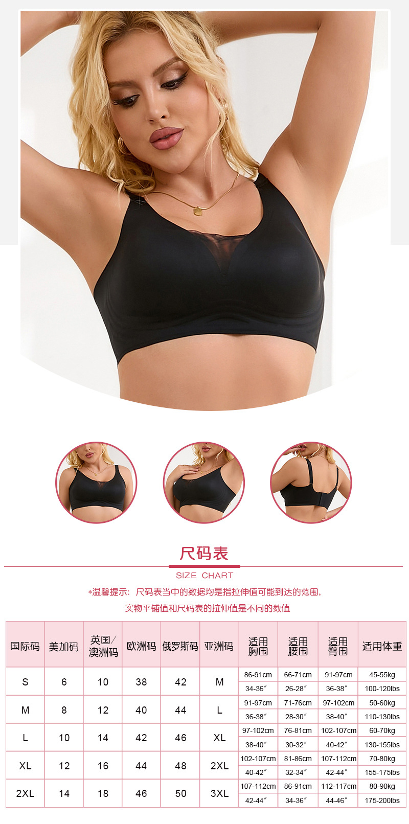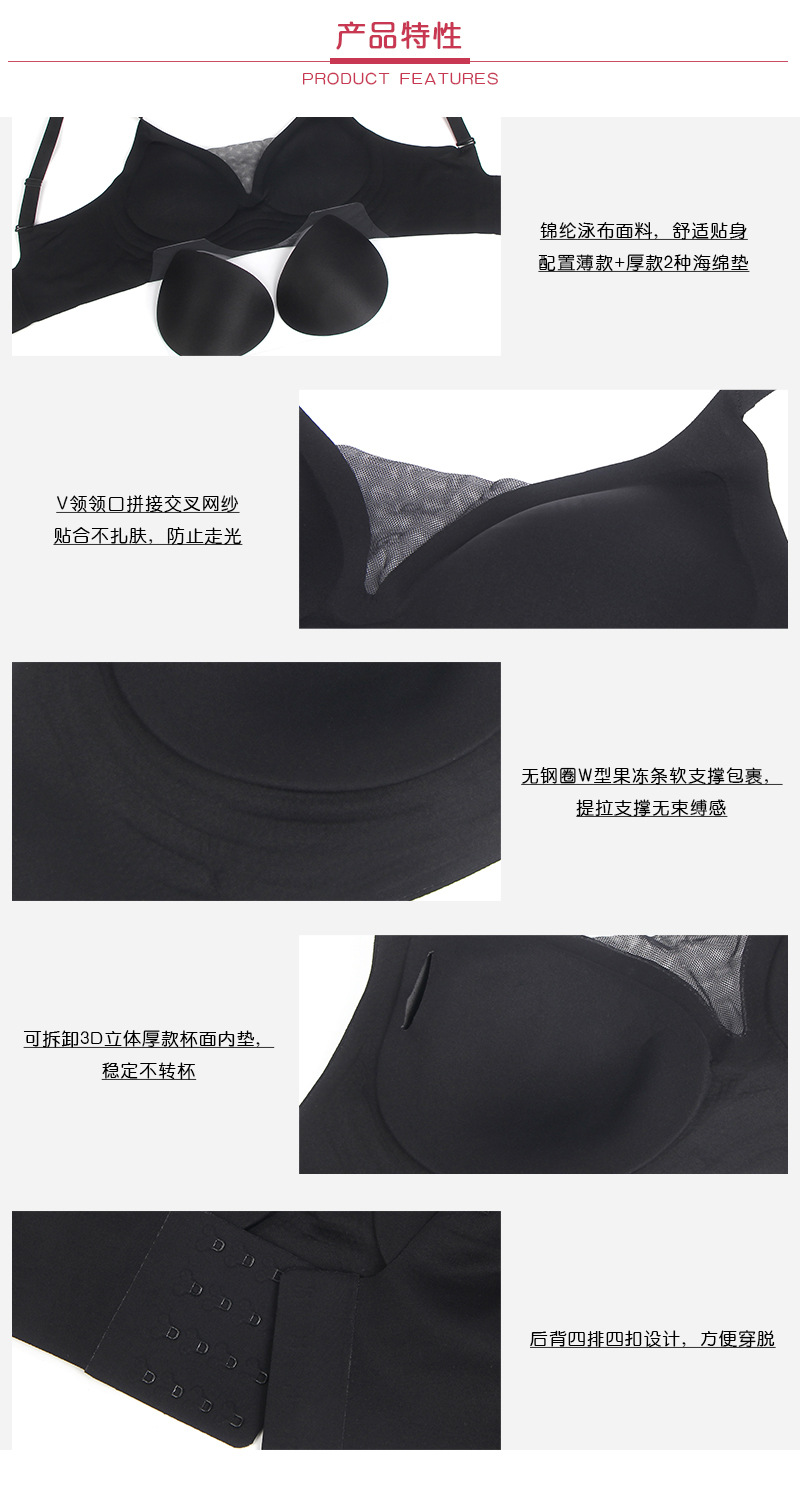 【产品包含】:女士性感无痕文胸(可拆卸薄款+厚款胸垫)