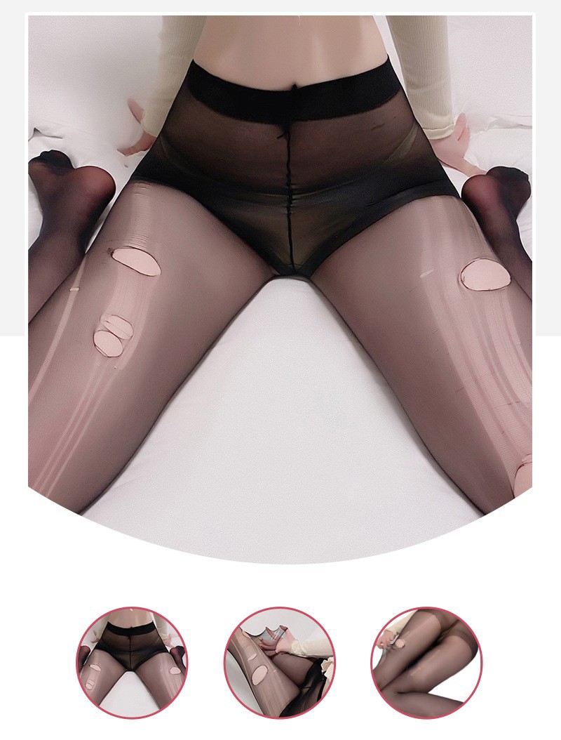 Medias sexuales, mano desgarrada, medias sin desgarrar, medias ultra delgadas, agujeros desgarrados arbitrariamente, medias de piernas, seda negra, deseo puro.