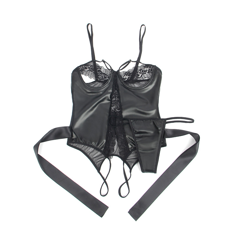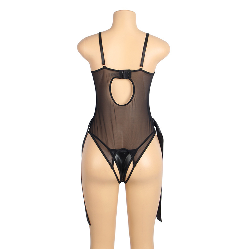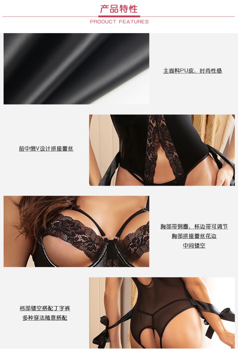 Nuevo estilo transfronterizo de ropa interior de gran tamaño de Europa y Estados Unidos, encaje negro, anillo de acero, calcetines de cuero agujeradas, unidad de tentación