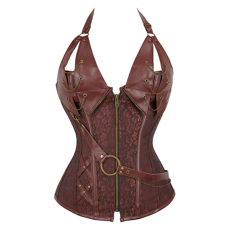 Europa y los Estados Unidos de moda retro corte corset grande caliente y sexy cuello de cuero impresa corset al por mayor en stock