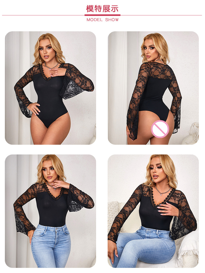 Primavera y otoño nuevo suministro transfronterizo de Amazon manga de cuerno de moda negra V-cuello de camiseta de mujer sin desprender la camiseta