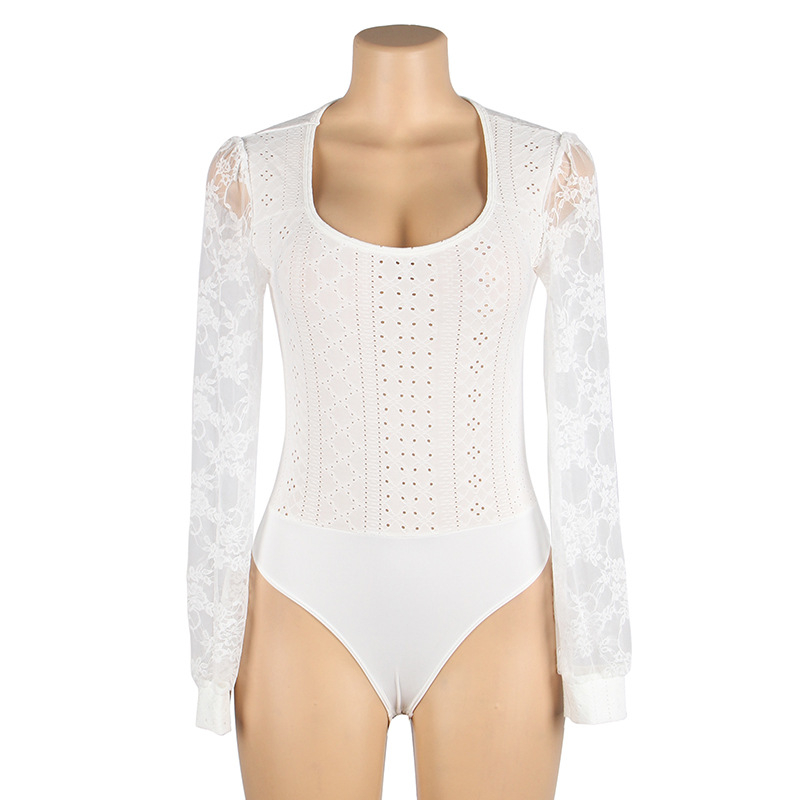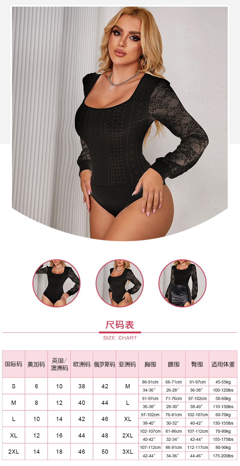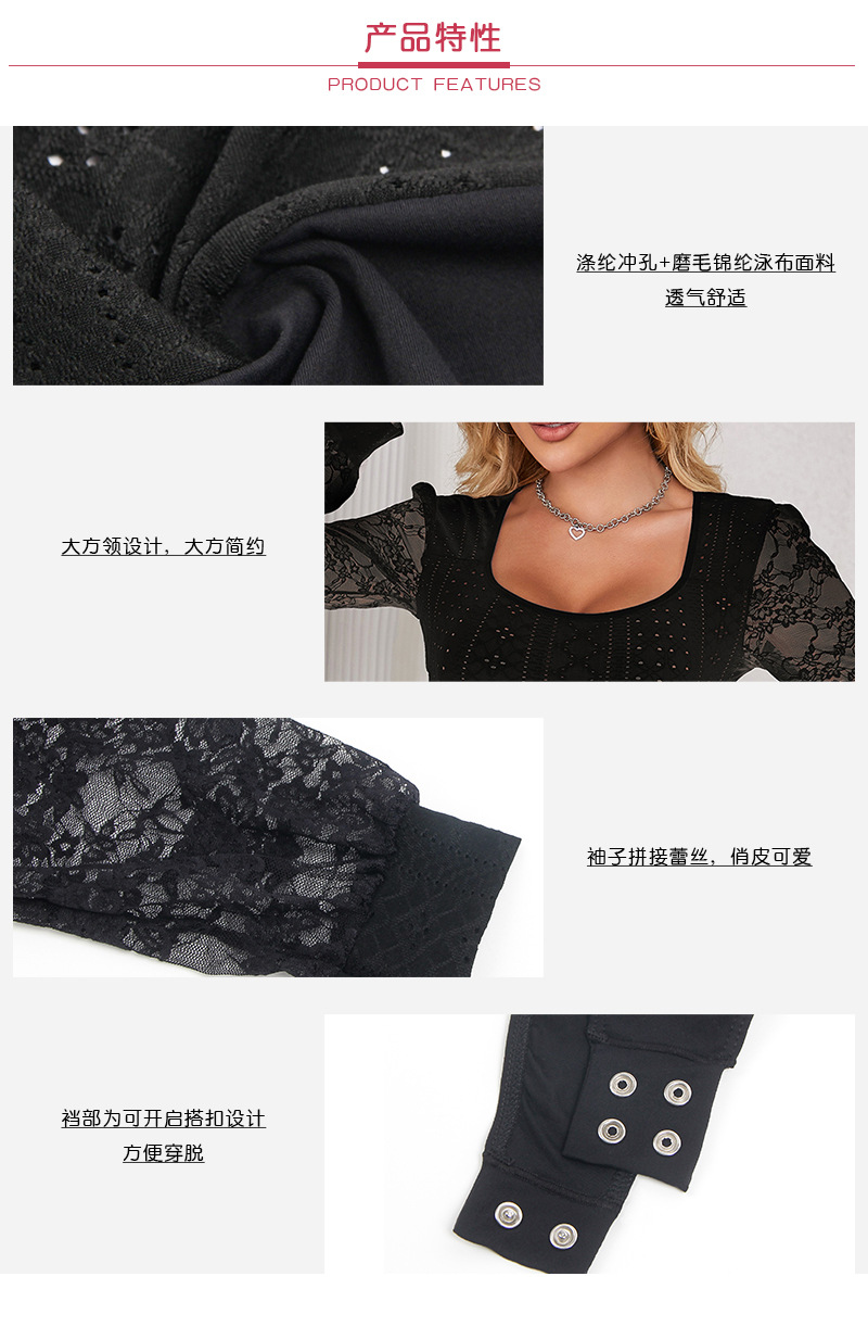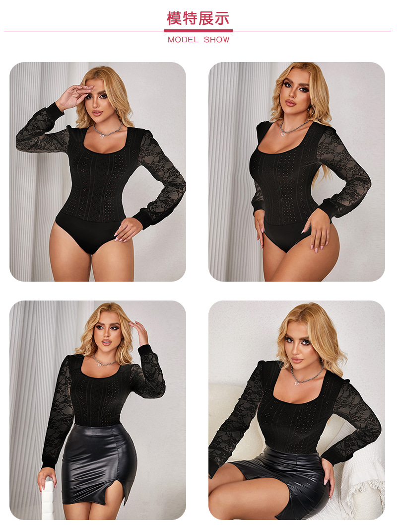 Amazon otoño francés simple básica manga larga entrepierna abierta inns Europa y América cuello cuadrado cuerpo delgado sin top