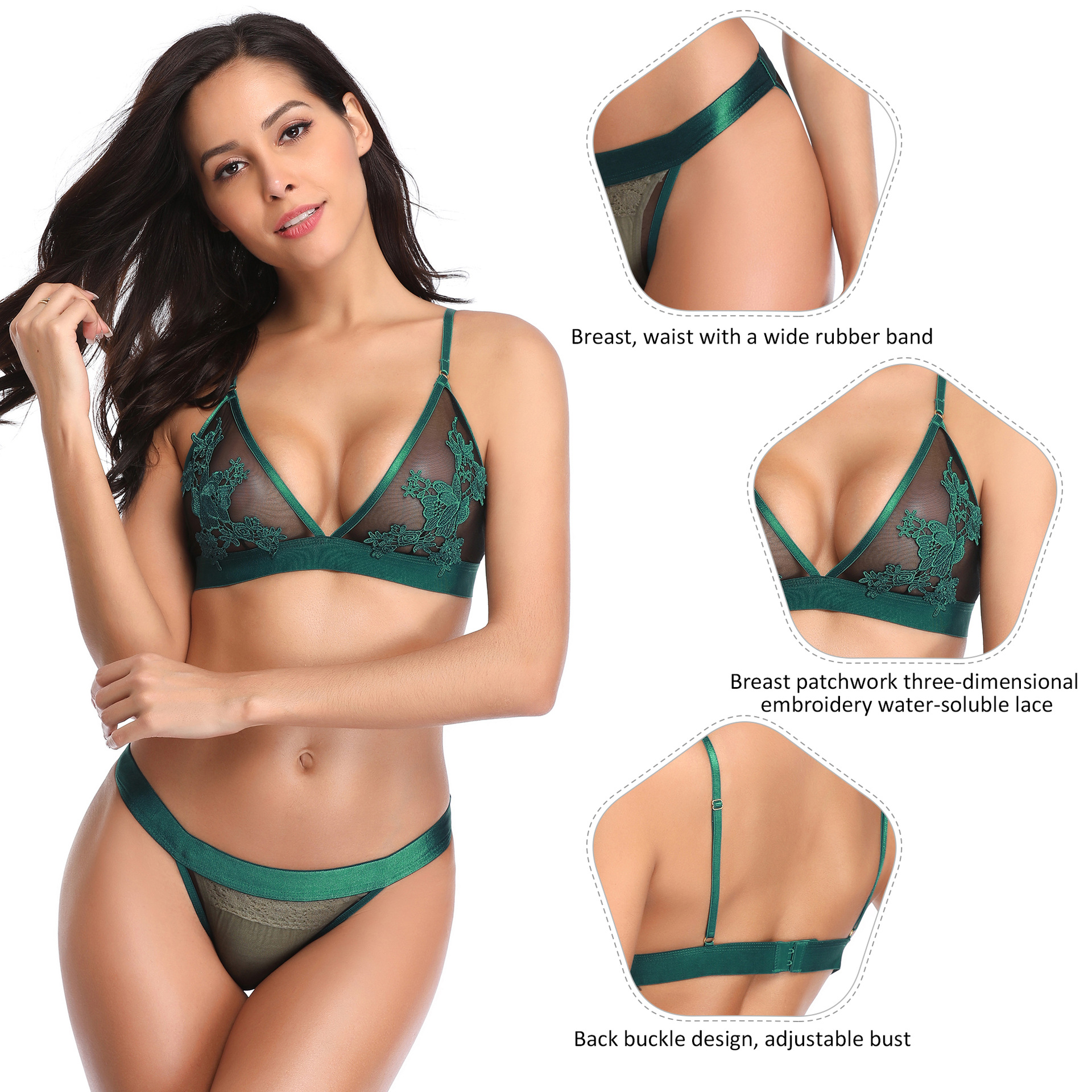 Transfronteriza cola al por mayor damas grandes bra bordado conjunto francés coqueteo sexy ropa interior pura quiere tres puntos
